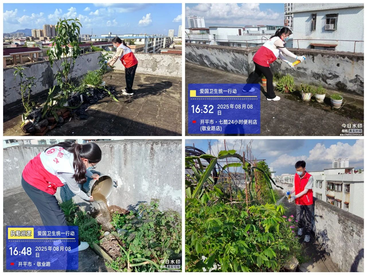 愛國(guó)擁軍促進(jìn)會(huì)黨員干部正在清理天臺(tái)積水