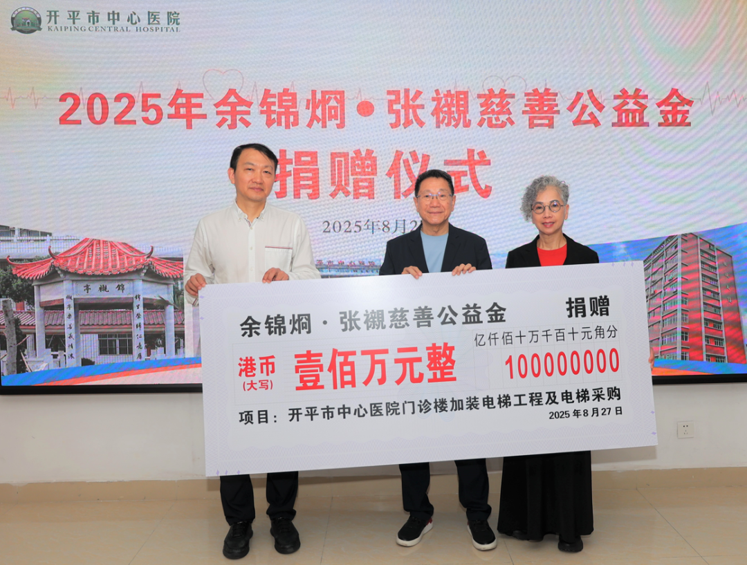 8月27日上午,余卓?jī)?、林翠薇伉儷一行到開平市中心醫(yī)院開展愛心捐贈(zèng)儀式暨交流座談會(huì),以拳拳赤子心、殷殷桑梓情,為開平醫(yī)療衛(wèi)生事業(yè)高質(zhì)量發(fā)展添磚加瓦。開平市領(lǐng)導(dǎo)伍德斌、梁俏筠出席活動(dòng)。