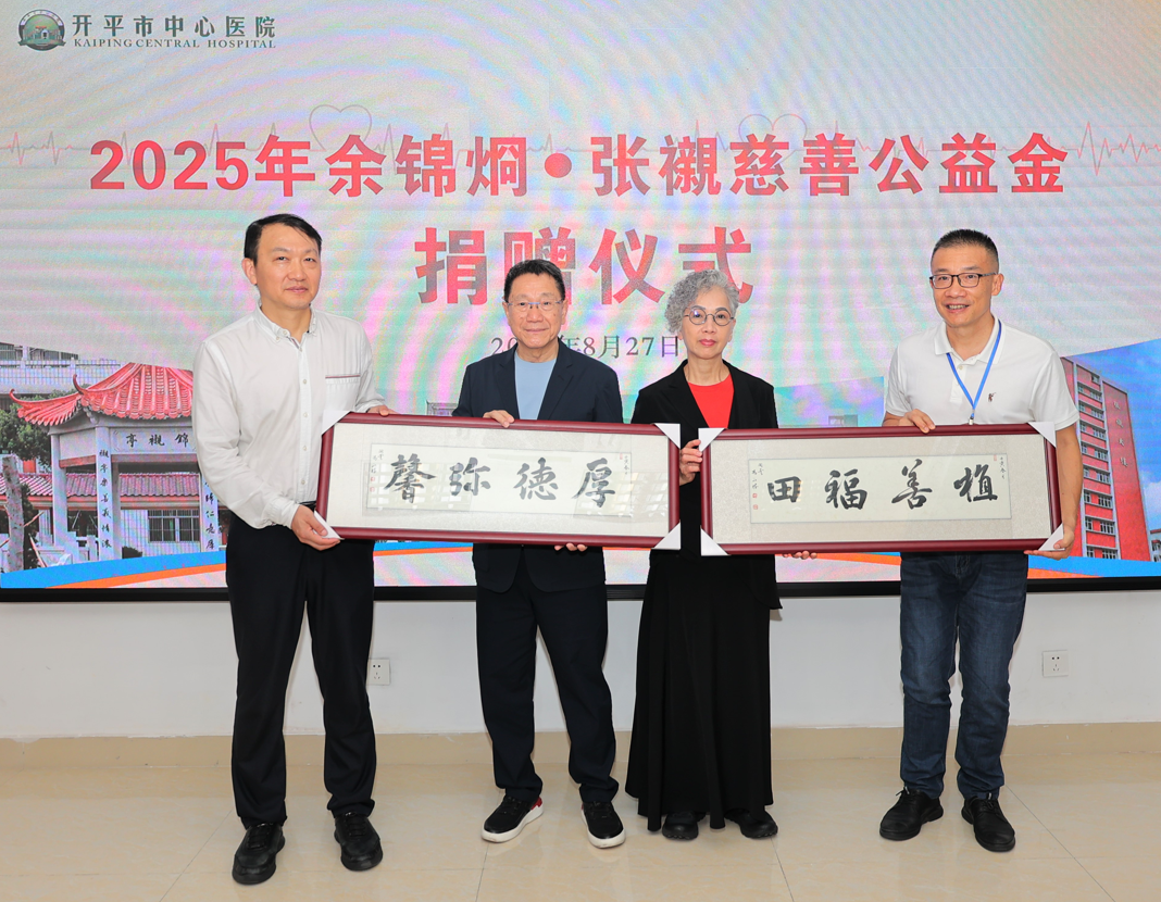 座談會(huì)上,余卓?jī)?、林翠薇伉儷再次捐資港幣100萬元,用于醫(yī)院門診樓加裝電梯項(xiàng)目,項(xiàng)目建成后將有效分流門診患者,提高醫(yī)護(hù)人員工作效率。隨后,開平市向余卓?jī)?、林翠薇伉儷回?zèng)了紀(jì)念品,感謝他們多年來踴躍捐贈(zèng),奉獻(xiàn)愛心,慷慨解囊支持開平醫(yī)療衛(wèi)生、鄉(xiāng)村振興等慈善事業(yè)發(fā)展,帶動(dòng)形成樂善好施、守望相助的良好社會(huì)風(fēng)尚。