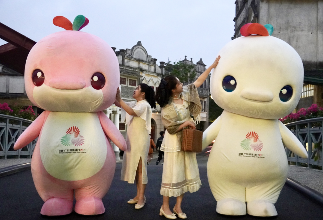 十五運(yùn)會(huì)吉祥物走進(jìn)赤坎華僑古鎮(zhèn)。