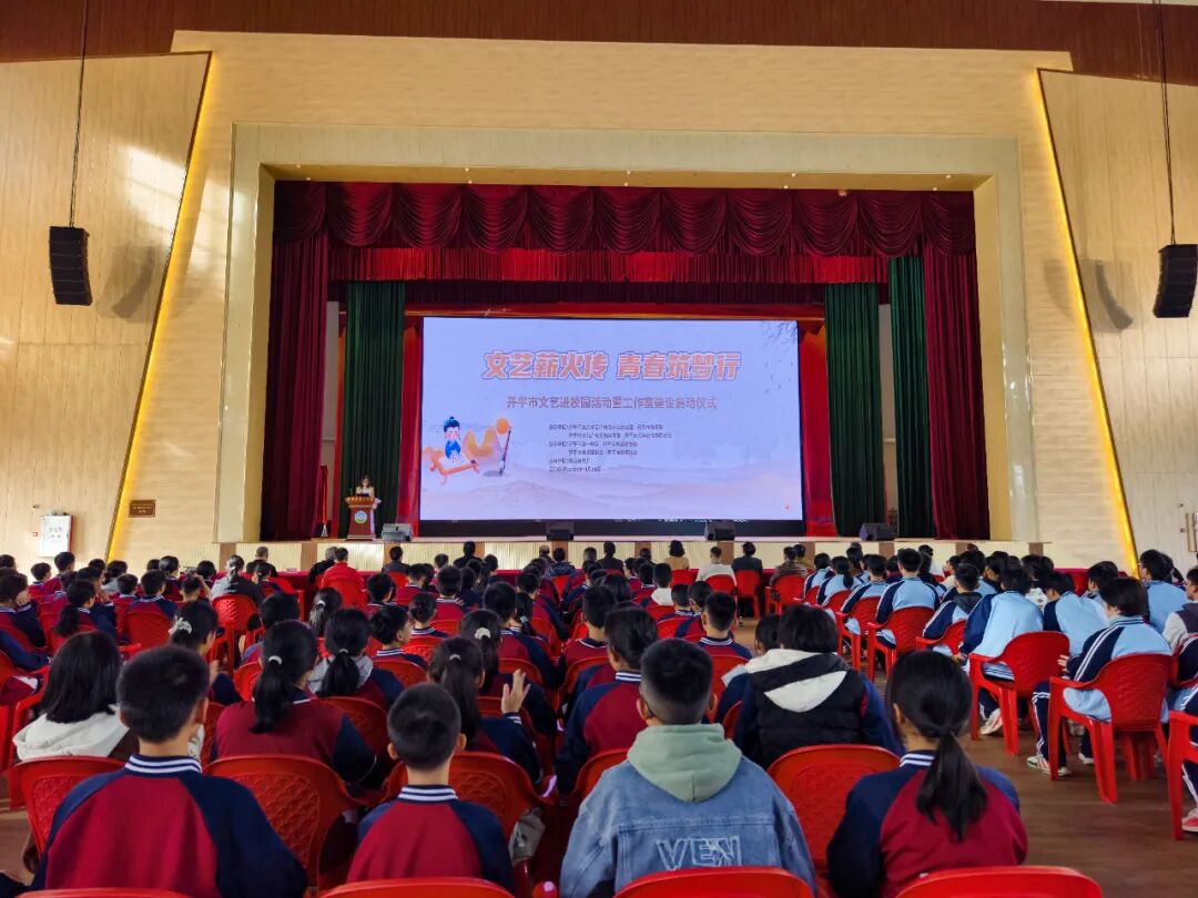 11月20-21日,開平市“文藝薪火傳 青春筑夢行”文藝進校園活動暨工作室建設(shè)啟動儀式分別在開平市第一中學(xué)和開平市開僑中學(xué)舉行,活動以推動優(yōu)秀傳統(tǒng)文化滋養(yǎng)校園為核心,秉持“以美育人、以文化人”理念,助力學(xué)生在藝術(shù)熏陶中成長。開平市領(lǐng)導(dǎo)周寶珠出席活動。