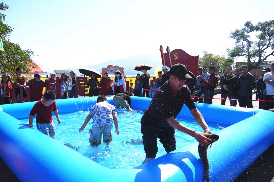 本次活動(dòng)現(xiàn)場(chǎng)設(shè)置了魚王競(jìng)猜、開平優(yōu)品市集展銷和趣味捉魚體驗(yàn)等多個(gè)項(xiàng)目,吸引了眾多市民游客參與。作為亮點(diǎn)環(huán)節(jié),“魚王競(jìng)猜”依托線上公眾號(hào)提前發(fā)起競(jìng)猜,現(xiàn)場(chǎng)公布了今年的“冠軍魚王”重達(dá)33.1斤。與此同時(shí),開平優(yōu)品攤位前,馬岡鵝、絲苗米、水果等各類產(chǎn)品整齊陳列,不時(shí)有市民游客認(rèn)真挑選心儀的商品;旁邊的趣味捉魚區(qū),大人和小孩挽起衣袖和褲子踏入水池,專注地尋找目標(biāo),親手體驗(yàn)捕魚的樂趣,熱烈的氣氛吸引了游客駐足圍觀。南海游客梁先生表示:“聽說大沙鎮(zhèn)有捕魚周活動(dòng),我們專程開車來玩。沿著綠道散步,在水庫(kù)邊喝杯奶茶、咖啡,消費(fèi)達(dá)標(biāo)后體驗(yàn)了捉魚。今天很幸運(yùn),捉到兩條魚!這里山清水秀,環(huán)境很舒服?!?/p>