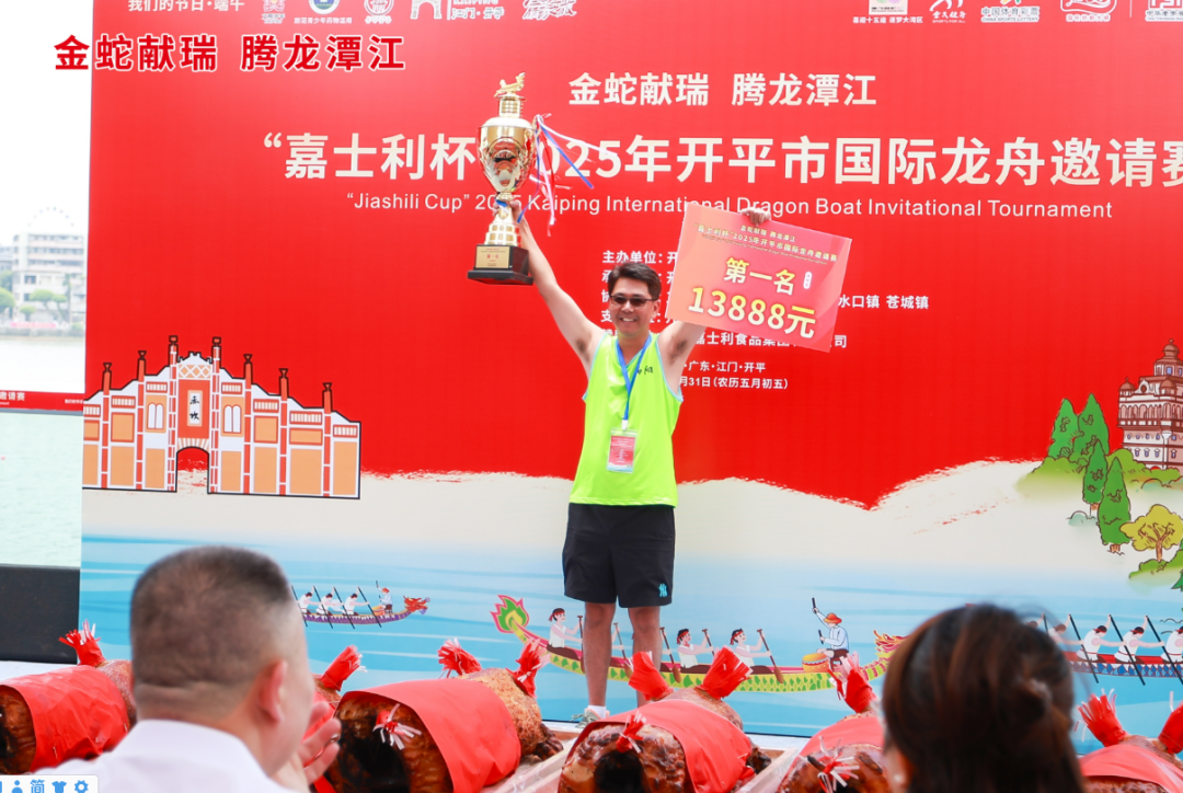 與往年的比賽相比,本屆賽事規(guī)模與國際化程度再創(chuàng)新高。參賽隊伍中,除開平本地強隊外,來自香港、澳門、廣州、新會、鶴山、臺山等粵港澳大灣區(qū)城市的龍舟隊也帶來了高水平的較量。新加坡、馬來西亞、加拿大、哈薩克斯坦等國際隊伍以及廣州航海學院“雙百行動”大學生龍舟隊的加入,更為賽事增添了濃厚的國際色彩和青春活力。