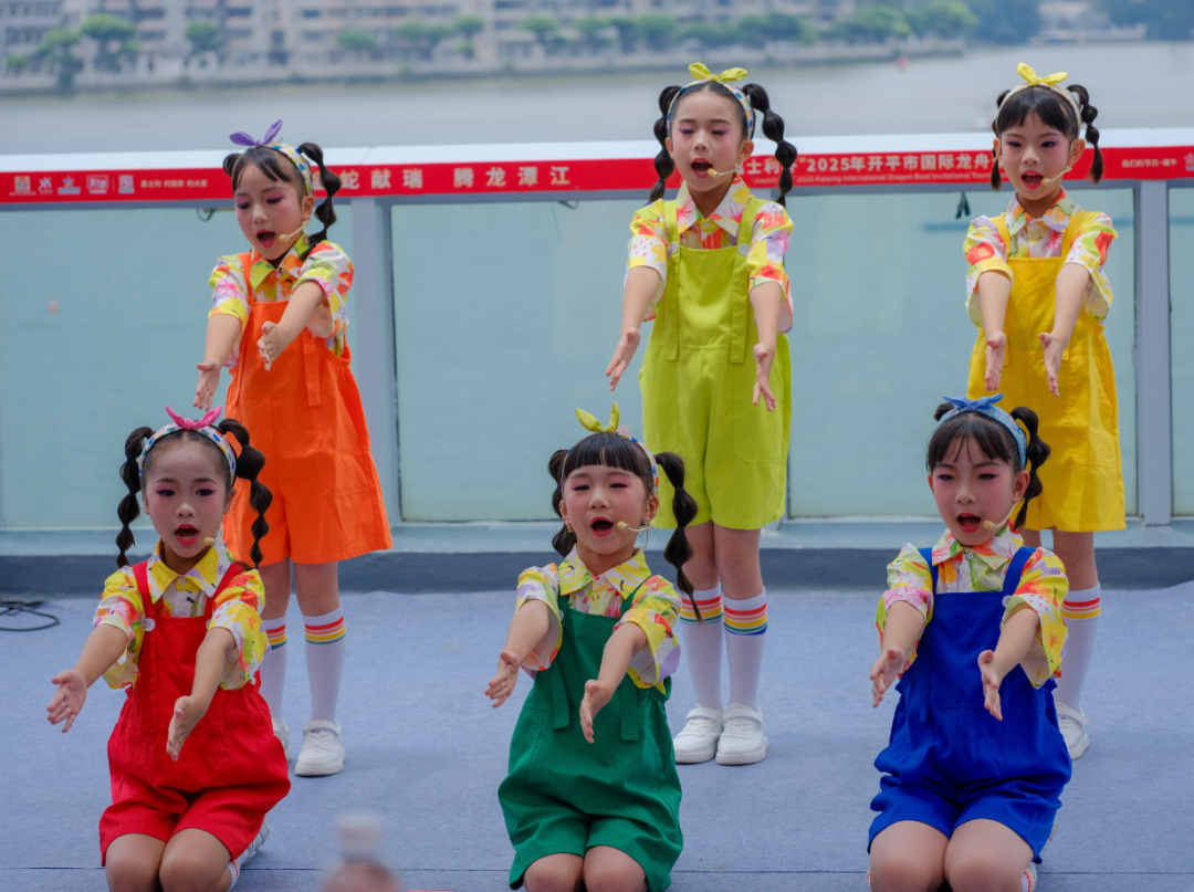 賽事期間,精彩紛呈的配套表演也為節(jié)日增添了濃厚的文化韻味。滑翔傘在碧空劃過瀟灑的弧線,傳統(tǒng)龍舟表演賽展現(xiàn)了古老龍舟的別樣風采;馬岡中心小學學生們帶來的《錦繡獅武》虎虎生威,舞出了少年兒童的朝氣;梁金山小學傾情演繹的粵曲《僑鄉(xiāng)童韻》婉轉(zhuǎn)動聽,將僑鄉(xiāng)故事融入曲韻悠揚。這些文化展示,既是開平深厚文化底蘊的體現(xiàn),也成為了市民和游客共享的文化大餐。