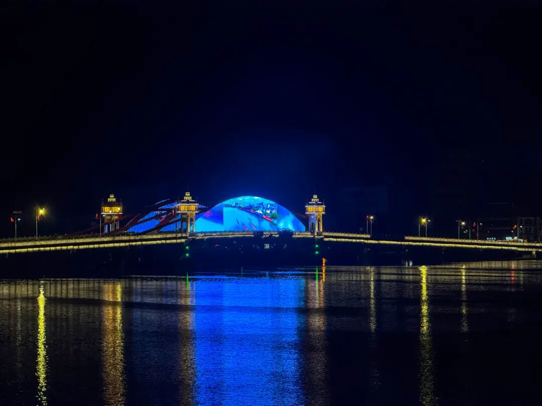 華燈初上,數(shù)千套LED燈組將潭江大橋裝點(diǎn)得熠熠生輝,璀璨影像訴說(shuō)著僑鄉(xiāng)的往昔故事與今朝風(fēng)采,幻彩燈光勾勒出橋身流暢的線條,宛如水上的“光影長(zhǎng)虹”。與潭江大橋遙相呼應(yīng)的祥龍橋也煥發(fā)出新的光彩,二者共同勾勒出潭江夜晚的嶄新輪廓。 此外,世紀(jì)之舟披上了“數(shù)字皮膚”,柔和的燈光環(huán)繞其主體,點(diǎn)點(diǎn)星光點(diǎn)綴著“船帆”,仿佛一艘白色帆船在潭江上乘風(fēng)啟航;其頂端則借助激光投影,在水面上呈現(xiàn)“三點(diǎn)三精彩之旅”“潭江潮起,僑風(fēng)浩蕩”等主題影像,光影變幻間,繪制出一幅幅視覺(jué)畫(huà)卷。 放眼望去,潭江之水緩緩流淌,兩岸建筑錯(cuò)落有致,綠樹(shù)長(zhǎng)廊連綿不斷,河堤步道整潔宜人。標(biāo)志性景觀建筑與潭江交相輝映,流光溢彩,光影斑駁。市民和游客沿江堤漫步時(shí),一路領(lǐng)略著不同的僑鄉(xiāng)風(fēng)情,深刻感受到開(kāi)平這座城市的獨(dú)特魅力。 為加速歷史街區(qū)的活化與利用,延續(xù)僑鄉(xiāng)歷史文化脈絡(luò),開(kāi)平市啟動(dòng)荻海埠保護(hù)更新綜合開(kāi)發(fā)項(xiàng)目。其中,一期項(xiàng)目涵蓋世紀(jì)之舟、潭江大橋及祥龍橋的改造提升工程。項(xiàng)目負(fù)責(zé)人表示,這次改造提升工程不僅注重景觀的視覺(jué)效果,更在細(xì)節(jié)處彰顯僑鄉(xiāng)文化的深厚底蘊(yùn),為開(kāi)平農(nóng)文旅融合發(fā)展注入新的強(qiáng)勁動(dòng)力。 “世紀(jì)之舟作為濱江區(qū)域的標(biāo)志性景觀節(jié)點(diǎn),通過(guò)外觀修復(fù)與燈光亮化,將煥發(fā)新的活力;潭江大橋、祥龍橋等橋梁的翻新工程,則進(jìn)一步提升了濱水空間的連通性與景觀協(xié)調(diào)性。這些改造不僅是城市面貌的更新,更是對(duì)僑鄉(xiāng)歷史文脈的延續(xù)與活化。項(xiàng)目致力于打造更具吸引力、更富文化底蘊(yùn)的濱水公共空間,為市民和游客提供更優(yōu)質(zhì)的休閑體驗(yàn),助力開(kāi)平文旅融合發(fā)展,展現(xiàn)‘三江六岸’的獨(dú)特魅力?!表?xiàng)目經(jīng)理李旭燾說(shuō)道。 接下來(lái) 開(kāi)平市將繼續(xù) 以城市品質(zhì)提升為抓手 通過(guò)更多創(chuàng)新舉措 讓僑鄉(xiāng)文化在新時(shí)代 煥發(fā)出更加絢麗的光彩 為市民和游客帶來(lái) 更加豐富多彩的文旅體驗(yàn)