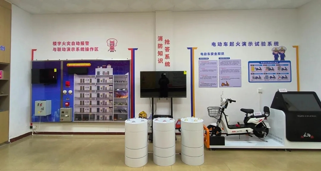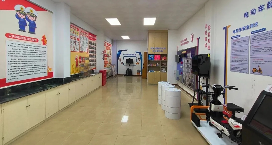 開平市消防救援大隊消防教育科普體驗室,是江門市基層消防大隊中首家建立的消防教育科普體驗室,面積約60平方米。該沉浸式智能科普平臺,從“防”“滅”“救”三個維度,全面展示了消防形象、知識科普、技能體驗、設備實操、應急救護五大展區(qū),其中配置有電動車起火模擬實驗臺、消防知識搶答與學習、樓宇火災報警聯(lián)動系統(tǒng)、VR火災現(xiàn)場模擬體驗、應急繩結學習、消防器材展示等功能區(qū)。通過“場景+體驗+互動”的多元化宣傳模式,讓群眾零距離體驗和學習消防知識。