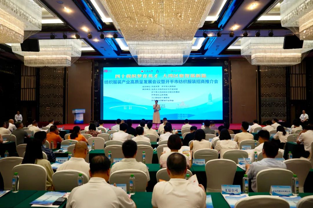 6月21日上午,由五邑大學(xué)、開平市人民政府聯(lián)合主辦的“四十載織夢(mèng)育英才 大灣區(qū)聚智謀新篇”紡織服裝產(chǎn)業(yè)高質(zhì)量發(fā)展會(huì)議暨開平市紡織服裝招商推介會(huì)在開平市舉行。大會(huì)匯聚政、產(chǎn)、學(xué)、研各界精英,共育紡織服裝產(chǎn)業(yè)新質(zhì)生產(chǎn)力,共繪灣區(qū)紡織智造新藍(lán)圖。五邑大學(xué)黨委常委、副校長(zhǎng)董超俊,開平市委副書記、市長(zhǎng)陳小曼,五邑大學(xué)紡織科學(xué)與工程學(xué)院黨委書記黃應(yīng)忠,五邑大學(xué)紡織科學(xué)與工程學(xué)院副院長(zhǎng)(主持工作)黃鋼,開平市領(lǐng)導(dǎo)余文鋒、譚曉華、張偉贊參加會(huì)議。