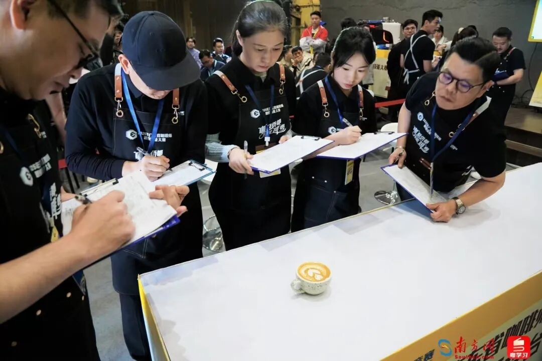 2025年廣東省咖啡師職業(yè)技能大賽共吸引全省各地市及港澳地區(qū)32支代表隊、68名選手參賽。比賽現(xiàn)場,咖啡機與磨豆機聲響此起彼伏,咖啡豆獨特的香氣彌散;選手們細心拉花,在咖啡杯中“雕刻”出細膩的泡沫藝術;細細品嘗每杯咖啡,選手們通過敏銳的味覺,讀懂咖啡背后的“故事”。
