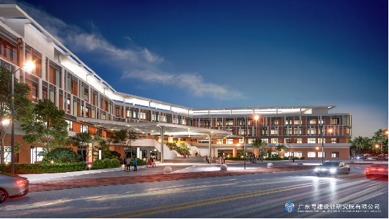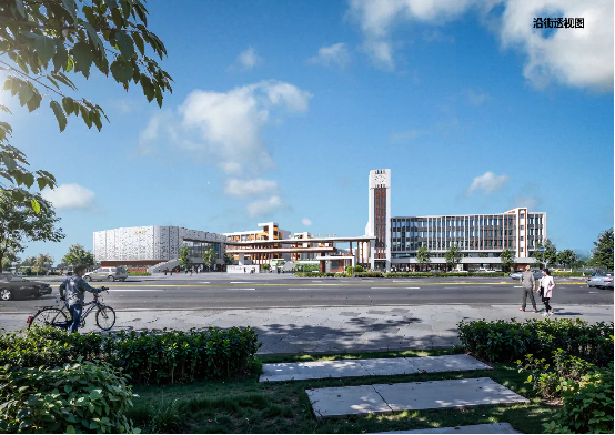 方案以“未來書院”為設計概念,在校園中心引入綠島公園,環(huán)繞布置休憩游廊,構建共享交通環(huán),而建筑群落則以院落形式環(huán)繞聚心落位,于空間布局上呈現出圍合的形態(tài),與碉樓的保護、守望內核相呼應,承古啟新,塑造新時代的僑鄉(xiāng)書院