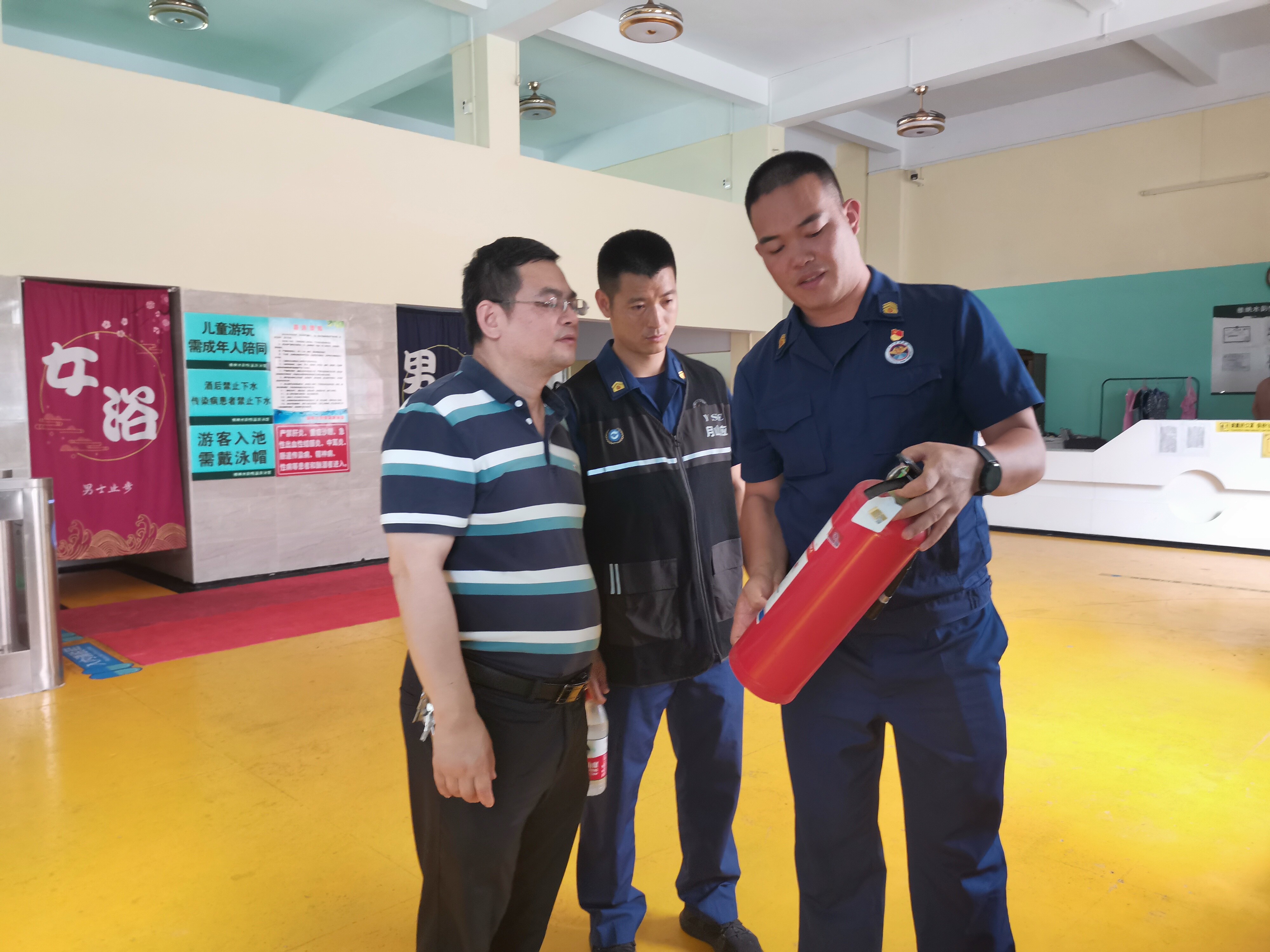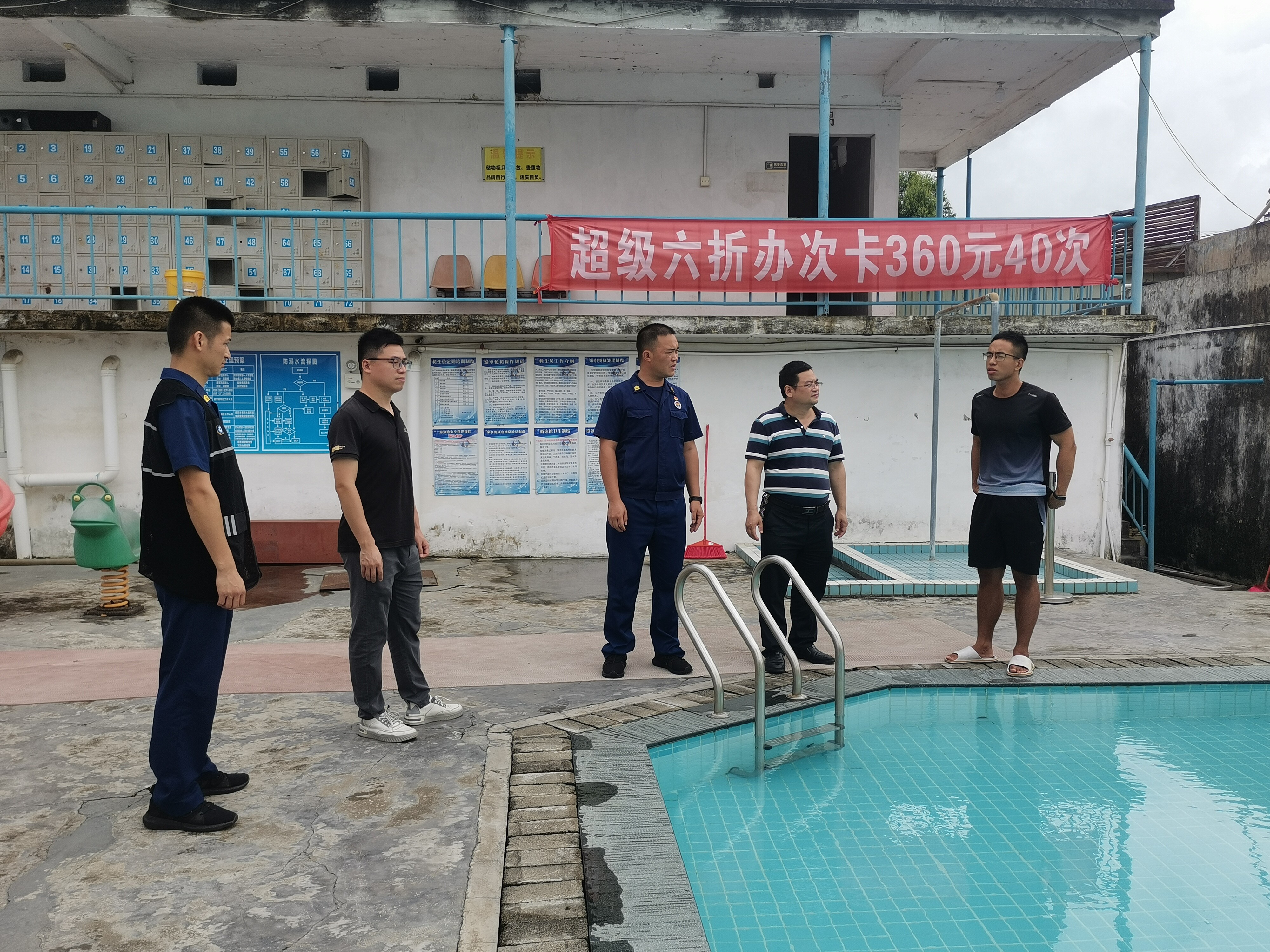 暑假即將到來,隨著夏季氣溫不斷升高,游泳將成為廣大群眾首選的消暑運動,游泳場所是否安全也成為廣大群眾的關(guān)注熱點。為營造安全的游泳環(huán)境,切實保障廣大群眾的生命安全,督促經(jīng)營性游泳場所規(guī)范經(jīng)營,防止游泳安全事故發(fā)生,近日,月山鎮(zhèn)副鎮(zhèn)長祝祥泰組織鎮(zhèn)公共服務中心、應急管理辦、專職消防隊,對我鎮(zhèn)經(jīng)營性游泳場所開展安全專項檢查。