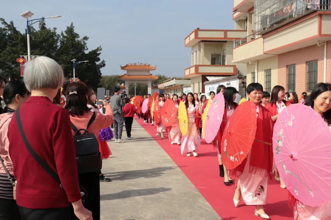 當(dāng)日上午,東明村鑼鼓喧天,鞭炮齊鳴,舉行了出嫁女回娘家儀式。在醒獅的引領(lǐng)下,該村300多名出嫁女身著鮮艷旗袍,或手撐油紙傘、高舉標(biāo)語,或肩挑禮擔(dān),帶著幸福的笑容,一起踏上充滿兒時回憶的道路,共同感受東明村鄉(xiāng)村振興的建設(shè)成果。一路上,鄉(xiāng)親們夾道歡迎,喜慶的隊(duì)伍從村口一直延伸到村內(nèi),形成一道靚麗的風(fēng)景線。