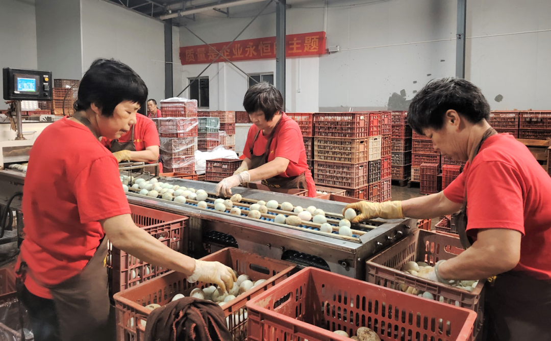 產(chǎn)業(yè)鏈的延伸也拓寬了村民的增收渠道。鴨蛋制品在分揀、包裝、搬運(yùn)等環(huán)節(jié)所需的勞動(dòng)力,為周邊村民提供了“家門口”的就業(yè)崗位,實(shí)現(xiàn)了“掙錢顧家兩不誤”。
