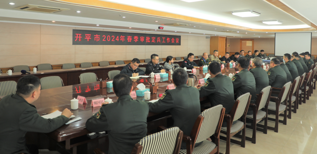3月12日上午,開平市組織召開2024年春季審批定兵工作會議,審定今年春季應(yīng)征入伍的新兵名單和兵員去向,部署下一階段征兵工作。江門軍分區(qū)動員處上校處長易思保到場監(jiān)督指導(dǎo),開平市委常委、市人武部上校部長邊科教,市人武部上校政治委員張華參加會議。