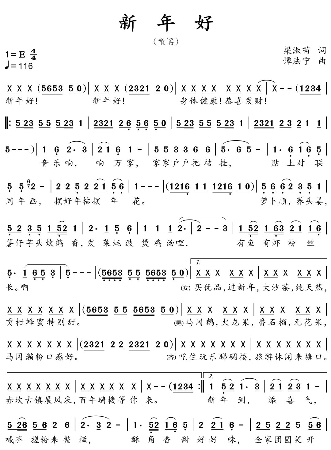 作詞:梁淑苗 作曲:譚法寧 歌譜: