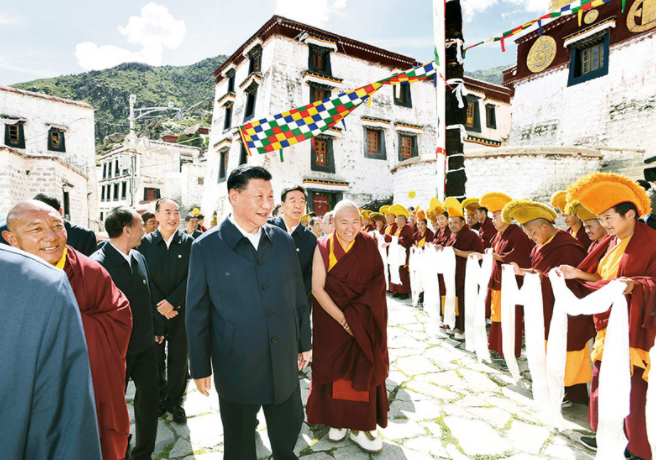 這是22日下午,習(xí)近平在位于拉薩西郊的哲蚌寺考察。新華社記者 謝環(huán)馳/攝
