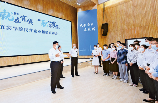 向正在參加企業(yè)招聘宣講會的教師、學(xué)生、企業(yè)負(fù)責(zé)人了解企業(yè)招工需求和畢業(yè)生簽約率等情況。新華社記者 李學(xué)仁/攝