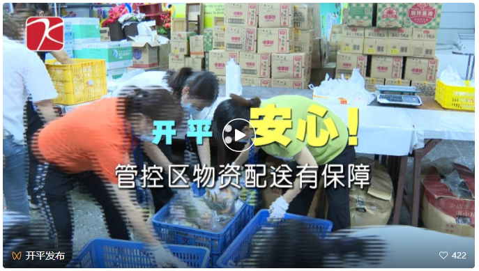 7月9日劃定“三區(qū)”后,開平市迅速啟動(dòng)生活物資保障應(yīng)急響應(yīng)機(jī)制,由市科工商務(wù)局牽頭聯(lián)系企業(yè)負(fù)責(zé)管控區(qū)的生活物資保障,全力保障居民群眾生活物資需求。