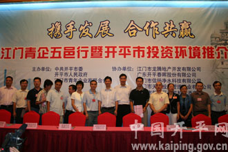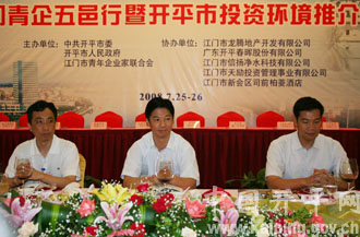 為加強(qiáng)江門(mén)市青年企業(yè)家聯(lián)合會(huì)會(huì)員企業(yè)與開(kāi)平企業(yè)的交流與合作,搭建政府與企業(yè)的溝通平臺(tái),積極推動(dòng)開(kāi)平經(jīng)濟(jì)和社會(huì)的協(xié)調(diào)發(fā)展,市委、市政府、江門(mén)市青年企業(yè)家聯(lián)合會(huì)于7月25-26日在我市舉行“江門(mén)青企五邑行暨開(kāi)平市投資環(huán)境考察活動(dòng)”。江門(mén)青企聯(lián)會(huì)員、江門(mén)青聯(lián)委員及省青企、青商、中山、珠海、肇慶、港澳臺(tái)等地的青年企業(yè)家代表以及我市領(lǐng)導(dǎo)馮立堅(jiān)、薛衛(wèi)東、司徒振波、林露華、吳年積、梁和平、陳靖、余明達(dá)及我市的青年企業(yè)家們近200人出席了活動(dòng)。