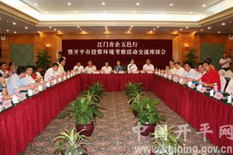 在交流座談會(huì)上,翠山湖管委會(huì)、廣東開(kāi)平春暉股份有限公司、廣東信達(dá)化纖有限公司和廣東海鴻變壓器有限公司分別向企業(yè)家們?cè)敿?xì)介紹各自的發(fā)展情況。企業(yè)家們還進(jìn)行了熱烈的交流。