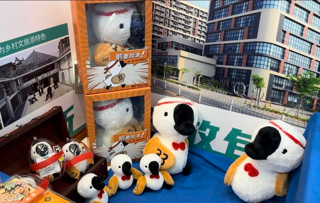 展區(qū)同時還邀請了入駐基地的創(chuàng)業(yè)項(xiàng)目主理人參展,來自香港的“鵝們藏寶圖”的主理人譚國萍帶著她可愛的“阿呆”毛絨公仔亮相,“阿呆”以開平馬岡鵝為創(chuàng)作原型,結(jié)合燒鵝、五味鵝等美食的元素,可愛有趣的可吸附設(shè)計,吸引了眾多求職者的目光?!跋M魑粠煹軒熋脗?,能帶著我們文創(chuàng)產(chǎn)品,來到開平,去逛我們的碉樓糧倉、赤坎古鎮(zhèn),去吃我們的馬岡鵝、豆腐角,去創(chuàng)業(yè)、去就業(yè)、去實(shí)現(xiàn)你自己的夢想。”譚國萍說道。