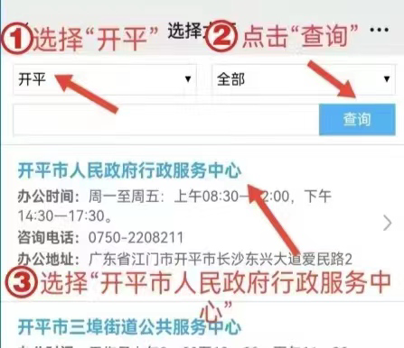 四、選擇辦事大廳,選擇“開平市人民政府行政服務(wù)中心”