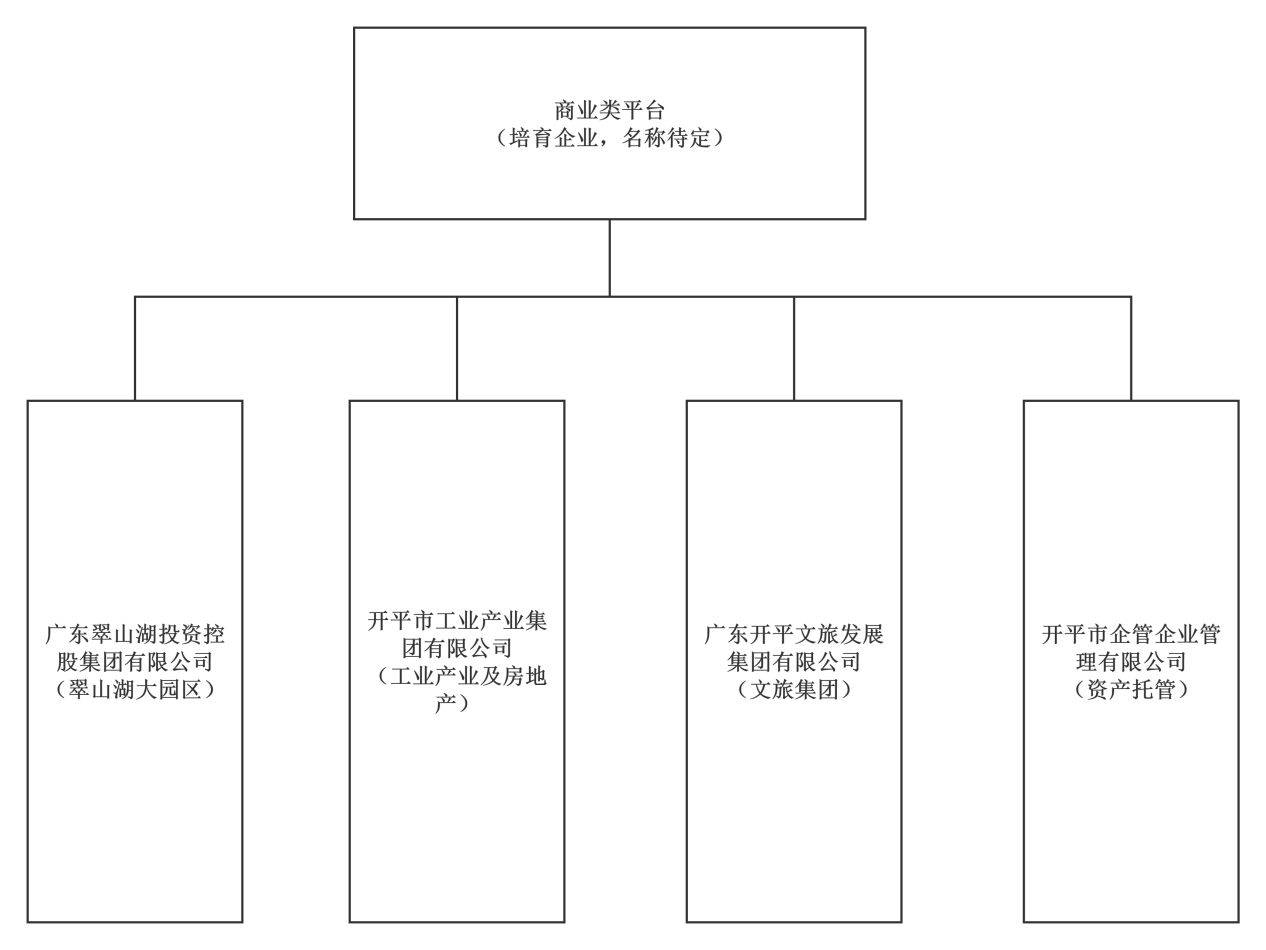 (一)以開(kāi)平市公有投資控股集團(tuán)有限公司為基礎(chǔ),搭建我市首個(gè)市屬國(guó)資百億級(jí)平臺(tái),并將該平臺(tái)作為我市的公益類企業(yè)平臺(tái),該平臺(tái)包括5個(gè)板塊企業(yè):