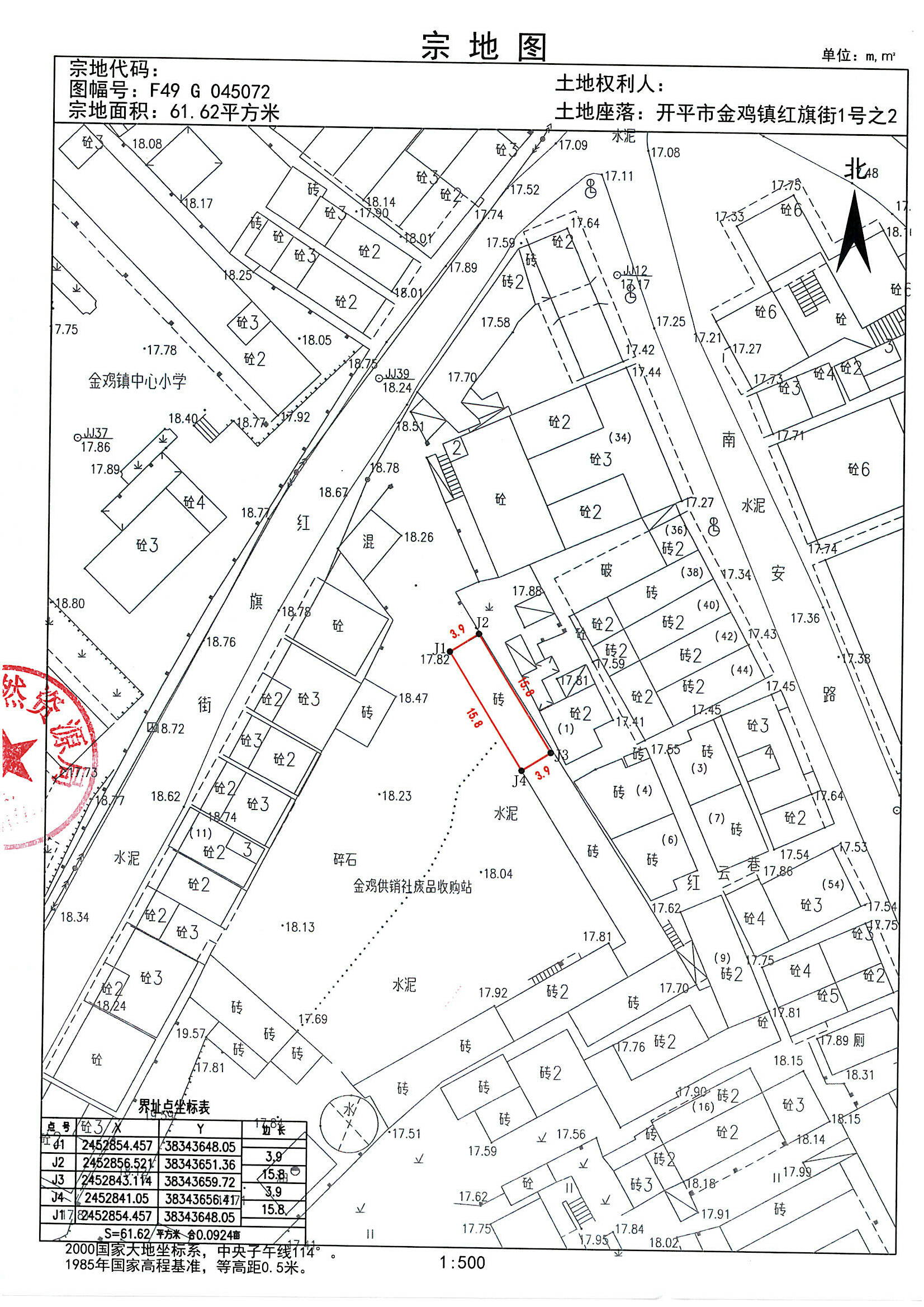 坐落在開平市金雞鎮(zhèn)南安路(現(xiàn)編門牌:開平市金雞鎮(zhèn)紅旗街1號之2)[開府國用(1995)第01493號]的土地使用權(quán),土地面積61.62平方米。用地單位開平市金雞供銷社現(xiàn)申請辦理不動產(chǎn)變更登記。若對該用地界線范圍內(nèi)的用地或地上建筑物權(quán)屬有異議者,自公告之日起15個工作日內(nèi)向開平市自然資源局金雞自然資源所書面提出意見。如無異議,公告期滿即給該單位辦理不動產(chǎn)登記有關(guān)手續(xù)。用地界線詳見附圖。