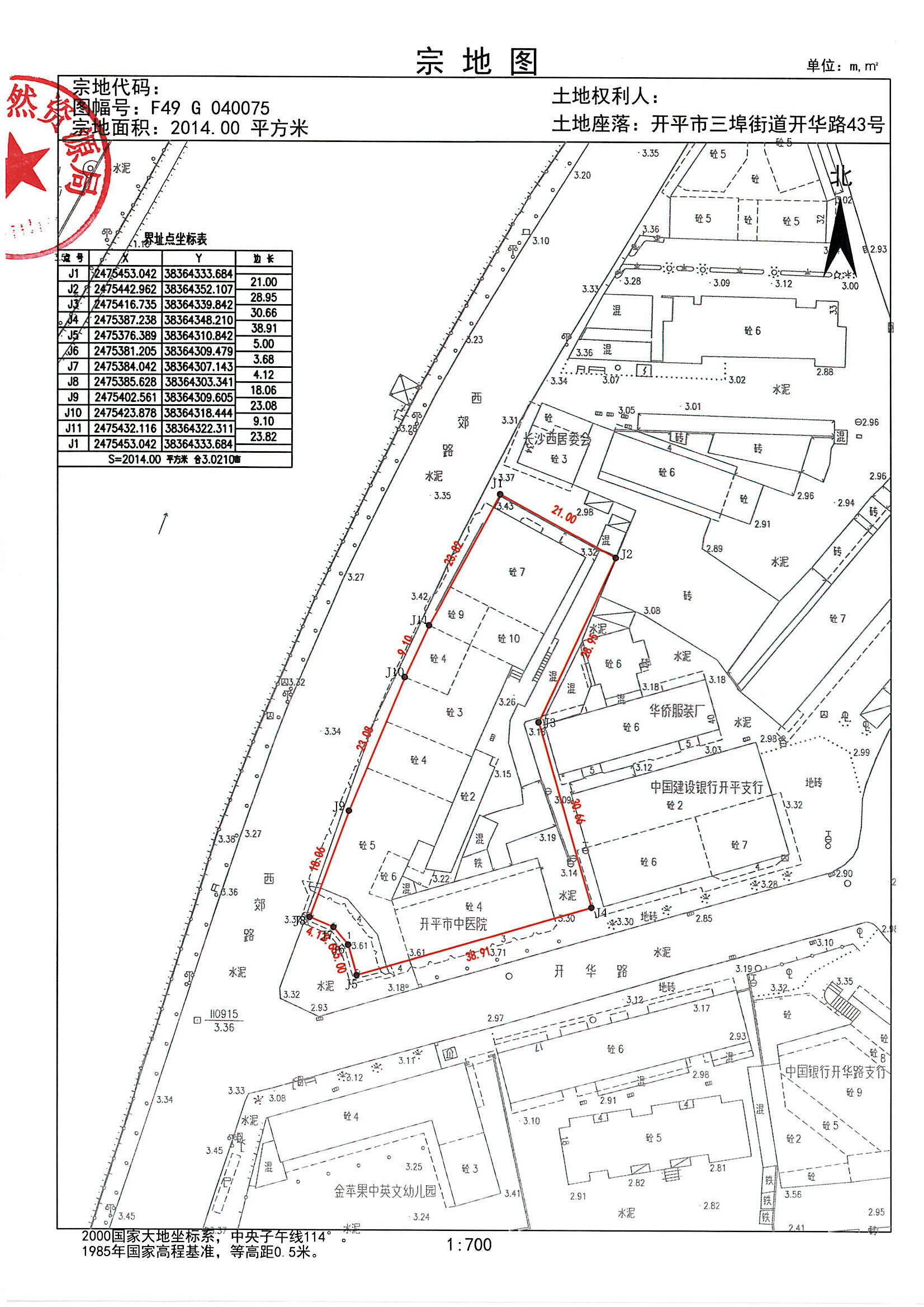坐落在三埠長(zhǎng)沙開華路(現(xiàn)編門牌:開平市三埠街道開華路43號(hào))[開府國(guó)用(1988)第000913號(hào)]的土地使用權(quán),土地面積2014平方米。用地單位開平市中醫(yī)院現(xiàn)申請(qǐng)辦理不動(dòng)產(chǎn)變更登記。若對(duì)該用地界線范圍內(nèi)的用地或地上建筑物權(quán)屬有異議者,自公告之日起15個(gè)工作日內(nèi)向開平市自然資源局三埠自然資源所書面提出意見。如無異議,公告期滿即給該單位辦理不動(dòng)產(chǎn)登記有關(guān)手續(xù)。用地界線詳見附圖。