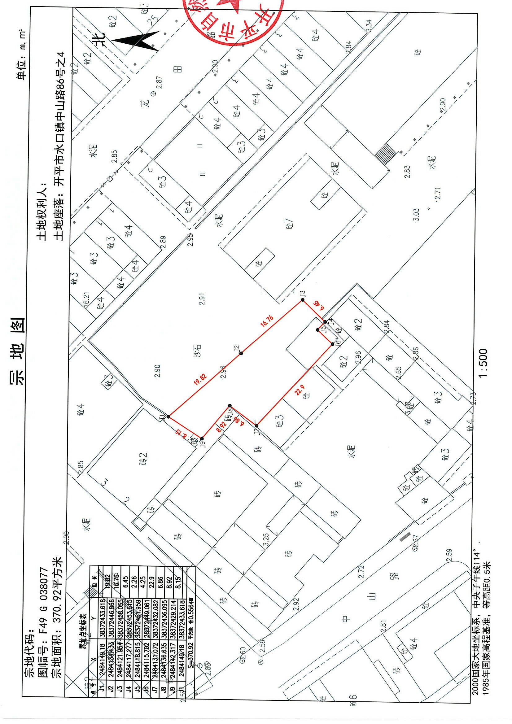 坐落在開平市水口鎮(zhèn)中山路糧所倉庫祠堂后(中山路92-96號)(現(xiàn)編門牌:開平市水口鎮(zhèn)中山路86號之3、開平市水口鎮(zhèn)中山路86號之4)[開府國用(2009)第05485號]的土地使用權,原土地面積5740.77平方米,現(xiàn)重新測繪后根據(jù)宗地實際使用情況,宗地分割為:86號之3宗地:3145.32平方米和86號之4宗地:370.92平方米。用地單位開平市糧食局直屬庫(開平市譚江糧油儲備有限公司)現(xiàn)申請辦理不動產變更登記。若對該用地界線范圍內的用地或地上建筑物權屬有異議者,自公告之日起15個工作日內向開平市自然資源局水口自然資源所書面提出意見。如無異議,公告期滿即給該單位辦理不動產登記有關手續(xù)。用地界線詳見附圖。
