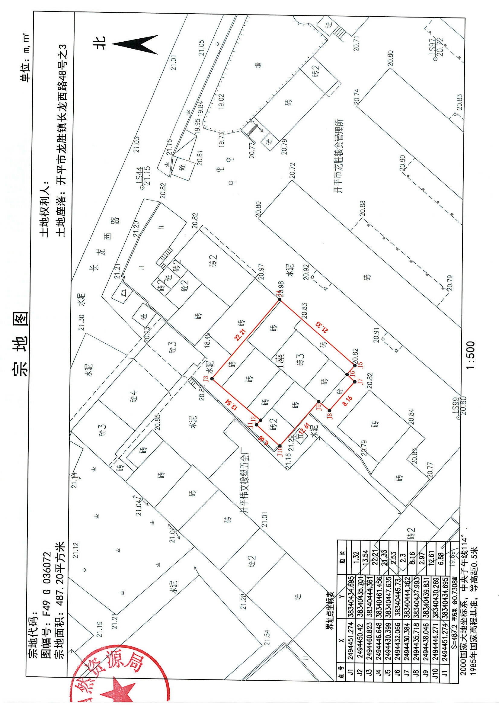 坐落在開平市龍勝鎮(zhèn)龍勝圩長龍西路48—2號(現(xiàn)編門牌:開平市龍勝鎮(zhèn)長龍西路48號之3)[開府國用(2009)第05155號]的土地使用權(quán),原土地面積774.00平方米,現(xiàn)重新測繪后根據(jù)宗地實際使用情況,宗地面積487.20平方米。用地單位開平市糧食局直屬庫(開平市譚江糧油儲備有限公司)現(xiàn)申請辦理不動產(chǎn)變更登記。若對該用地界線范圍內(nèi)的用地或地上建筑物權(quán)屬有異議者,自公告之日起15個工作日內(nèi)向開平市自然資源局水口自然資源所書面提出意見。如無異議,公告期滿即給該單位辦理不動產(chǎn)登記有關手續(xù)。用地界線詳見附圖。
