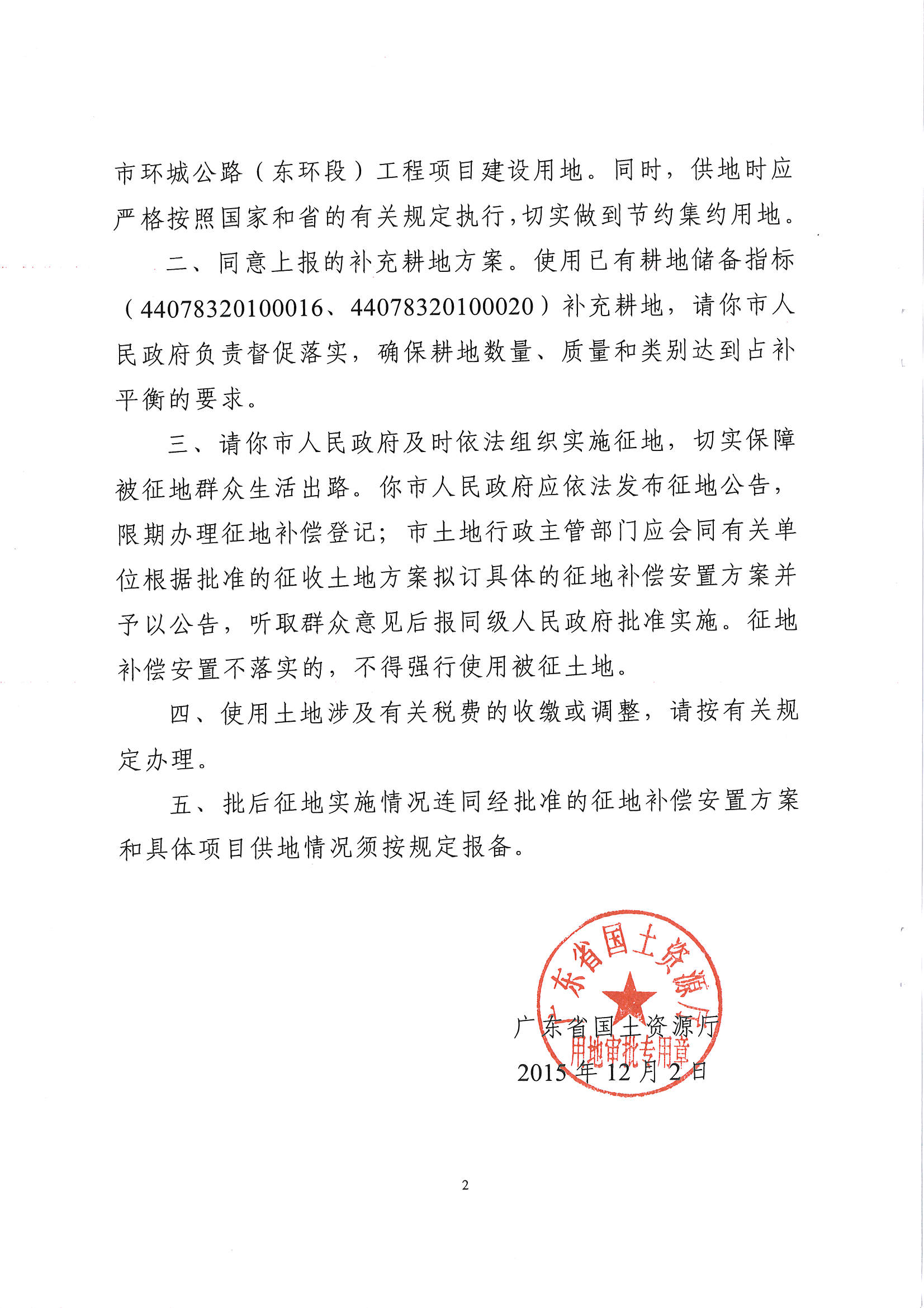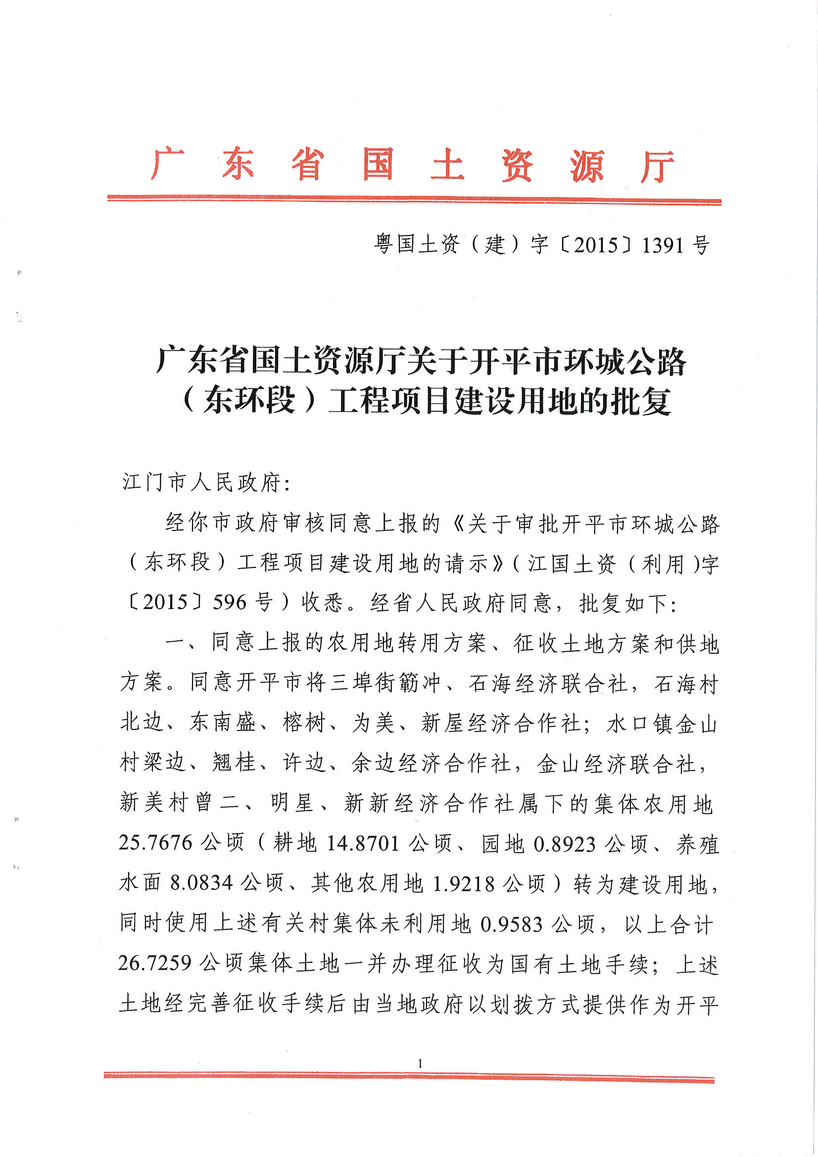 開平市環(huán)城公路(東環(huán)段)工程項目建設用地的批復