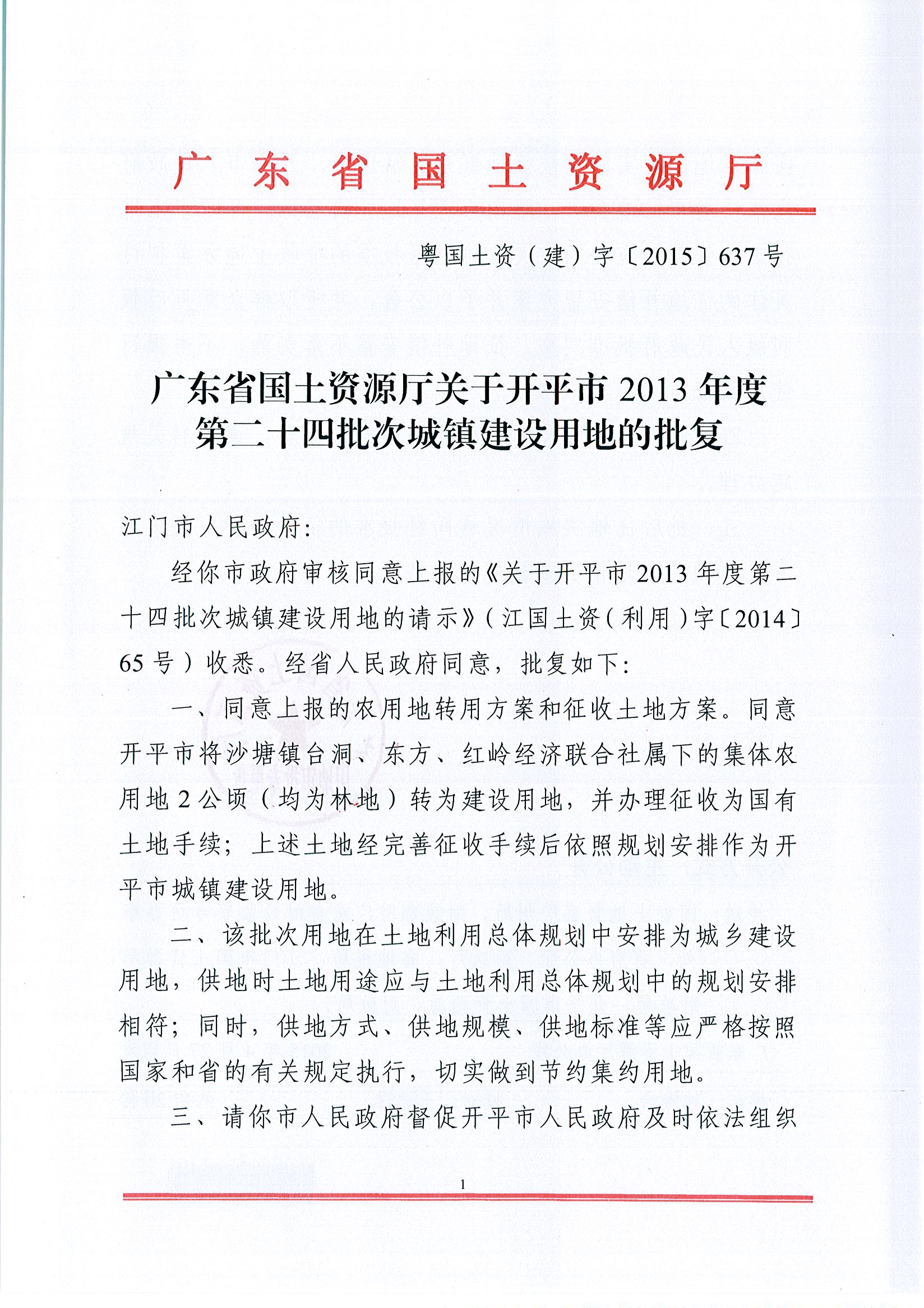 開(kāi)平市2013年度第二十四批次城鎮(zhèn)建設(shè)用地的批復(fù)