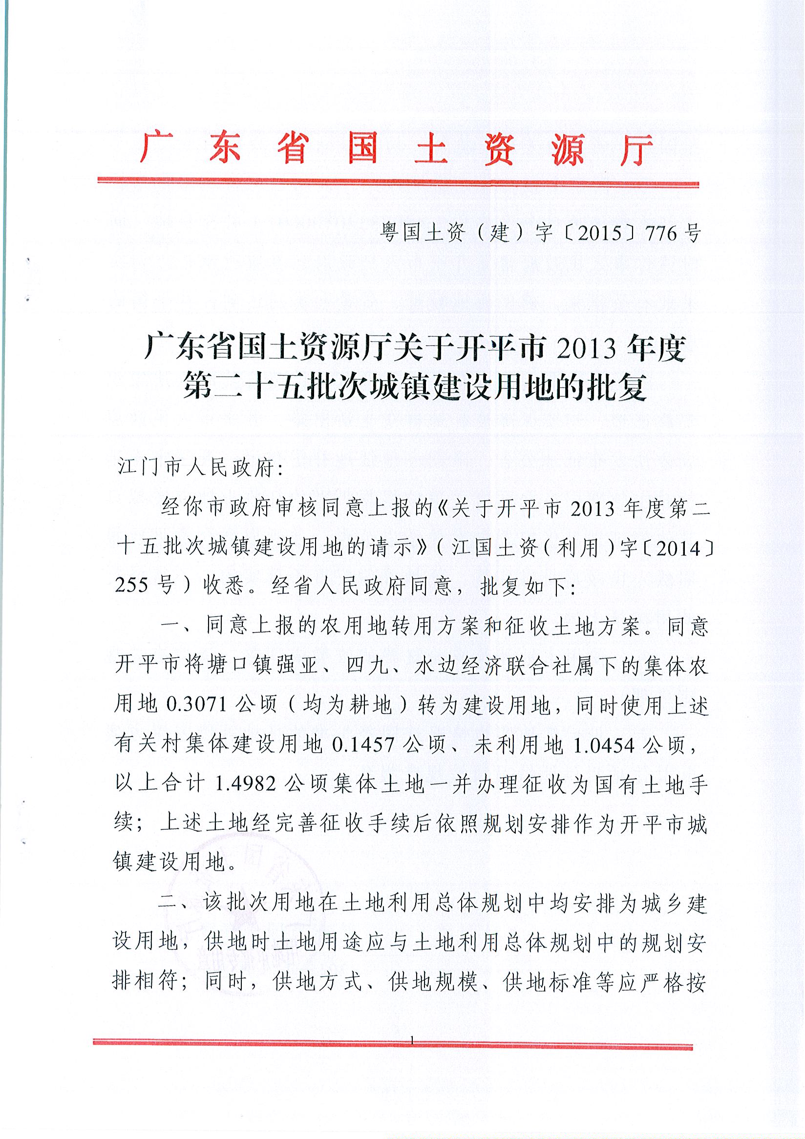 開平市2013年度第二十五批次城鎮(zhèn)建設用地的批復