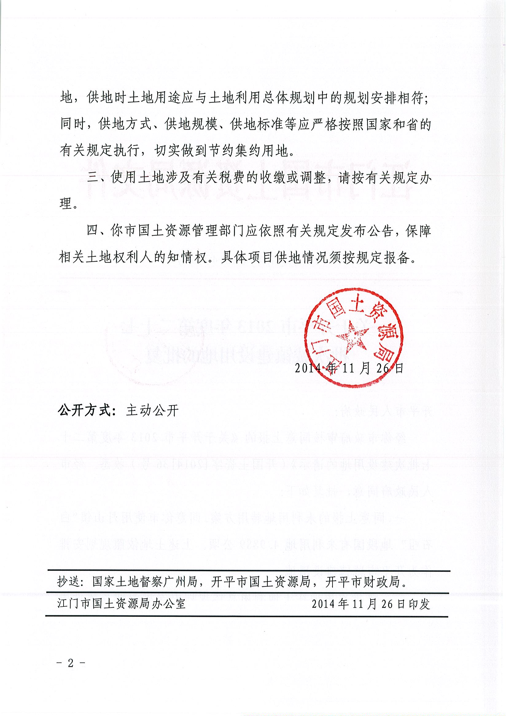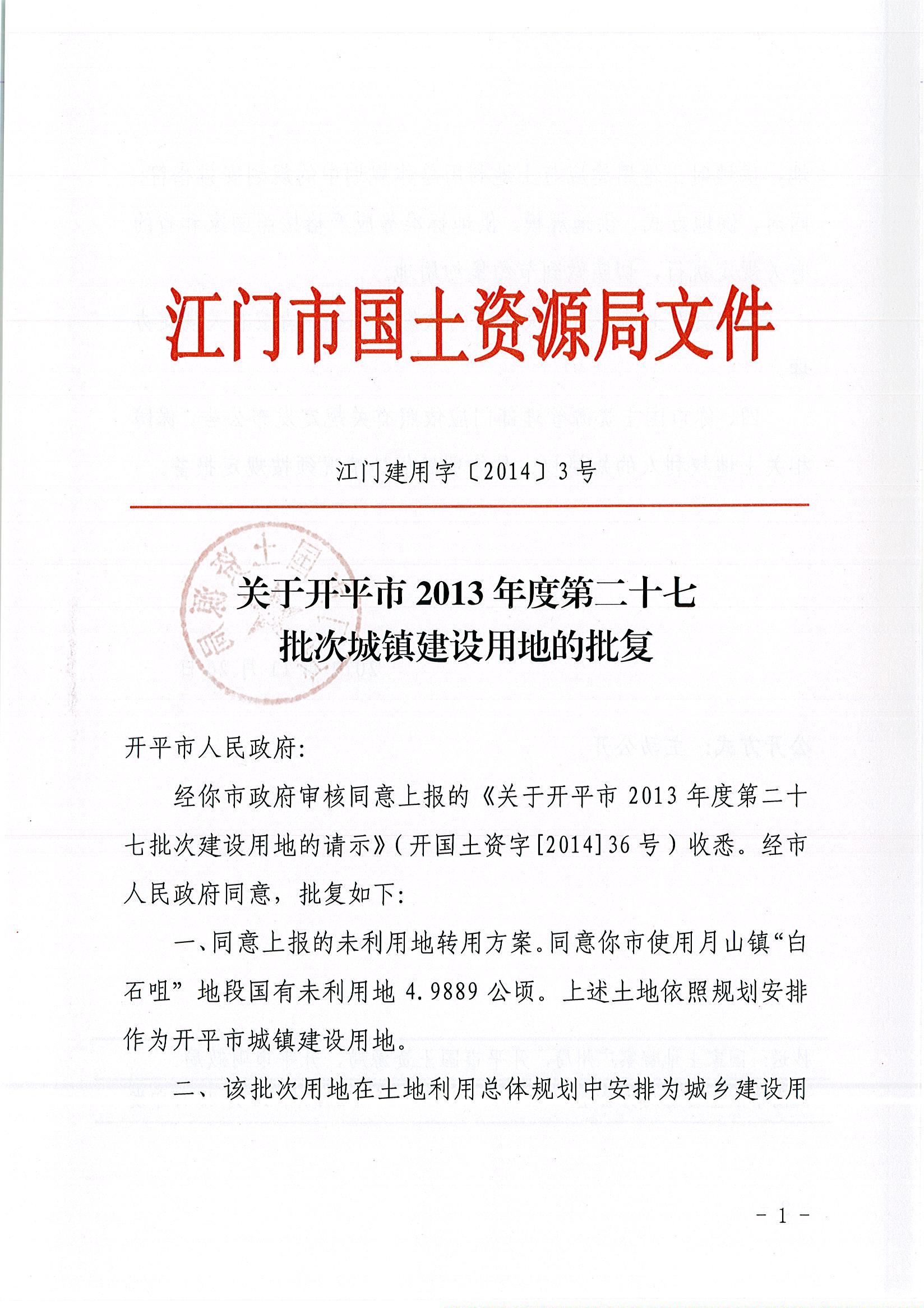 開(kāi)平市2013年度第二十七批次城鎮(zhèn)建設(shè)用地的批復(fù)