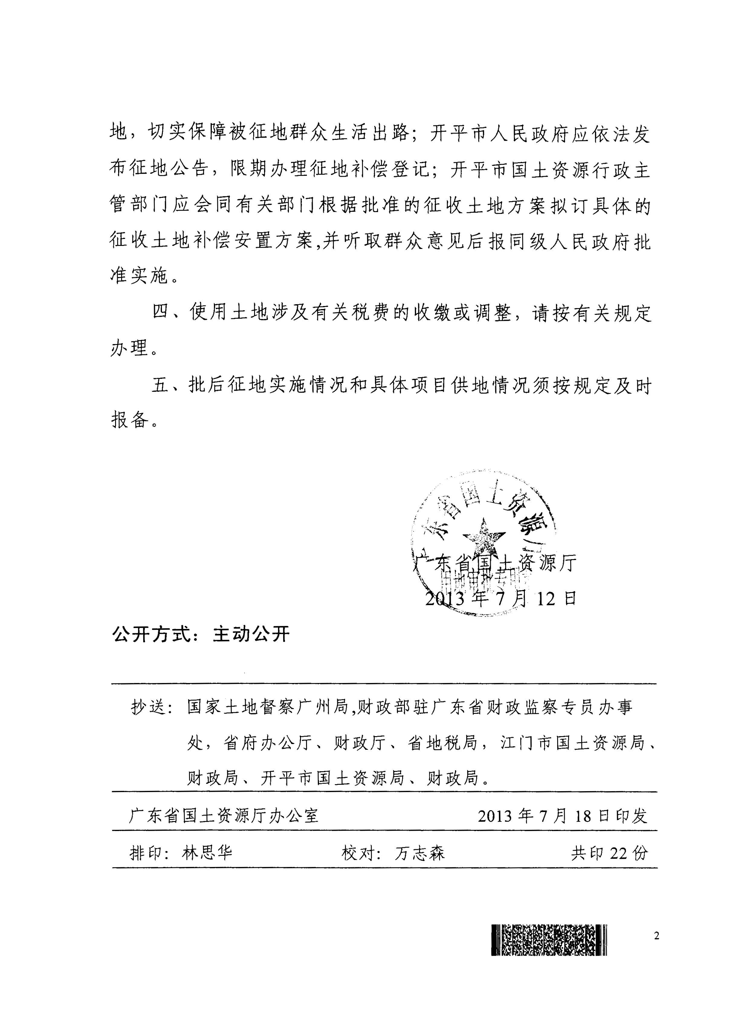 開平市2012年度第七批次城鎮(zhèn)建設(shè)用地的批復(fù)