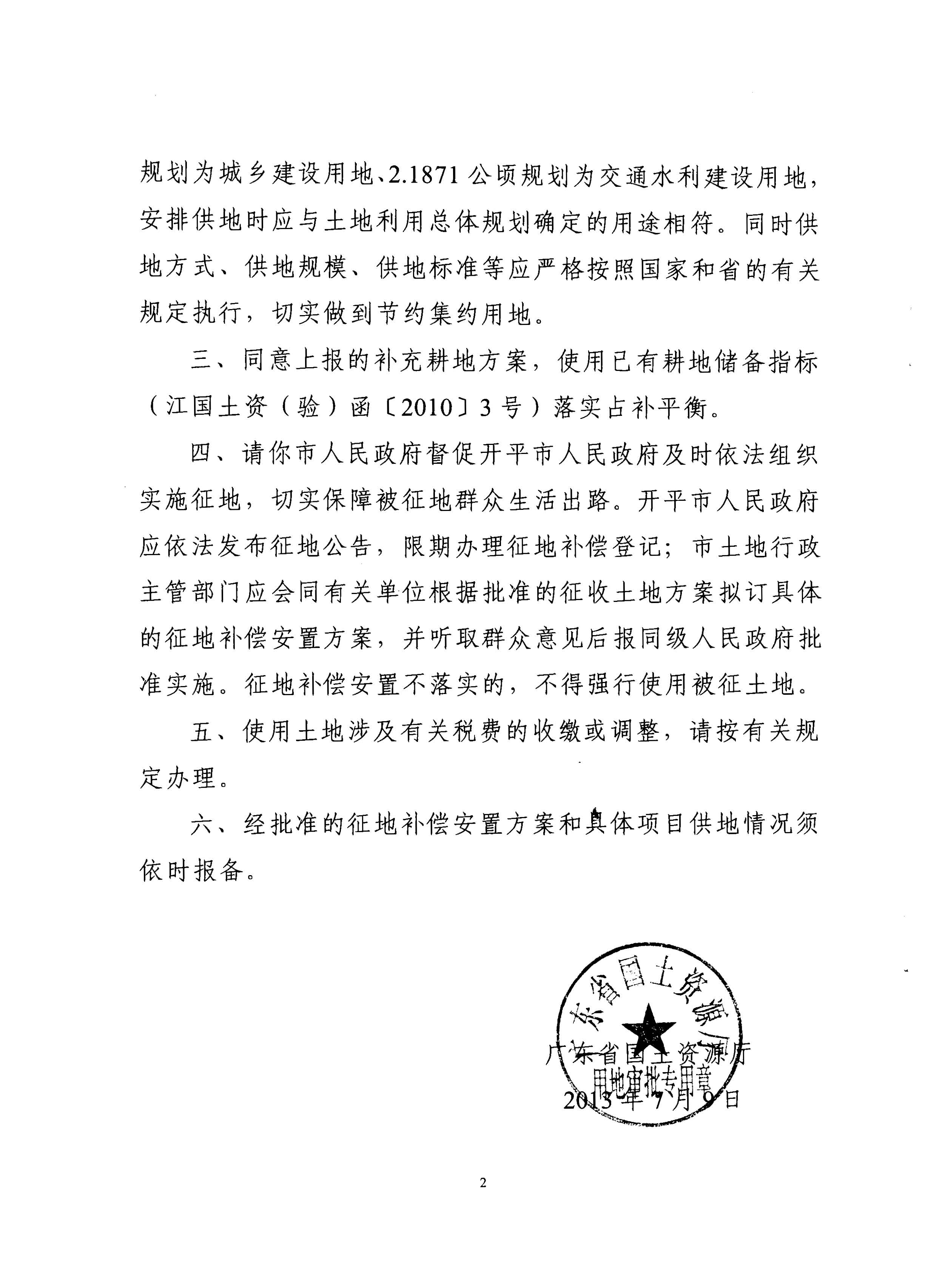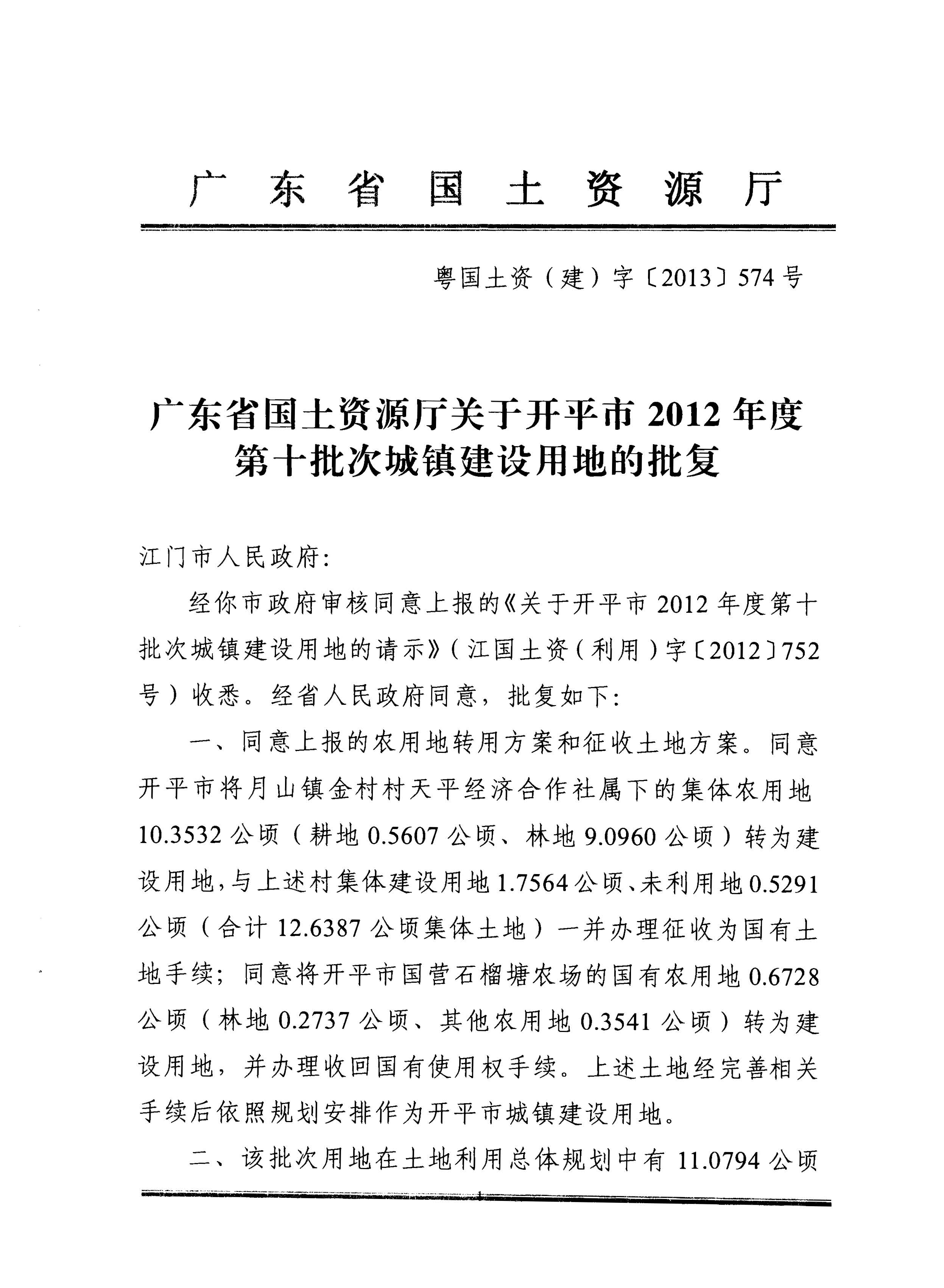 開(kāi)平市2012年度第十批次城鎮(zhèn)建設(shè)用地的批復(fù)