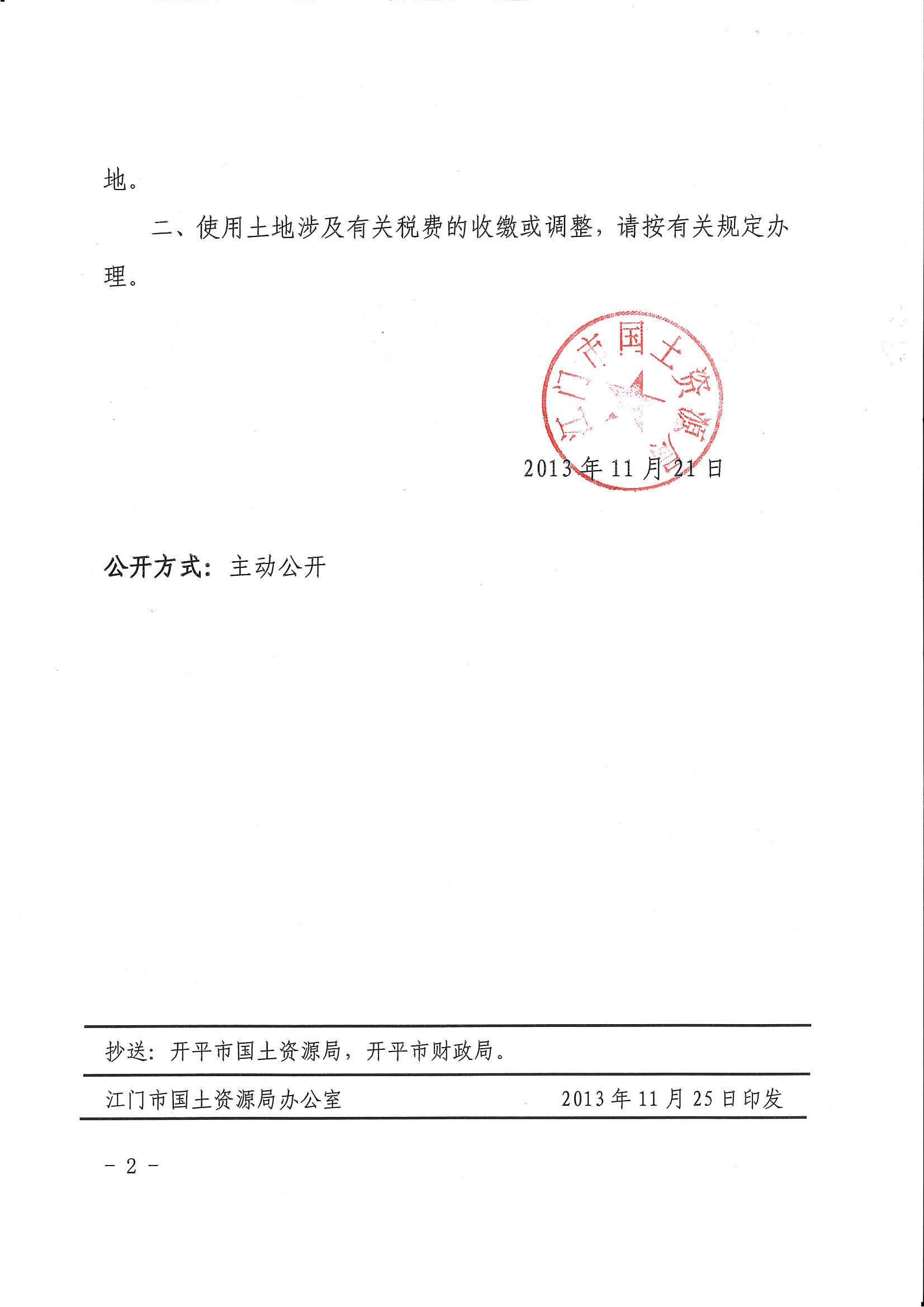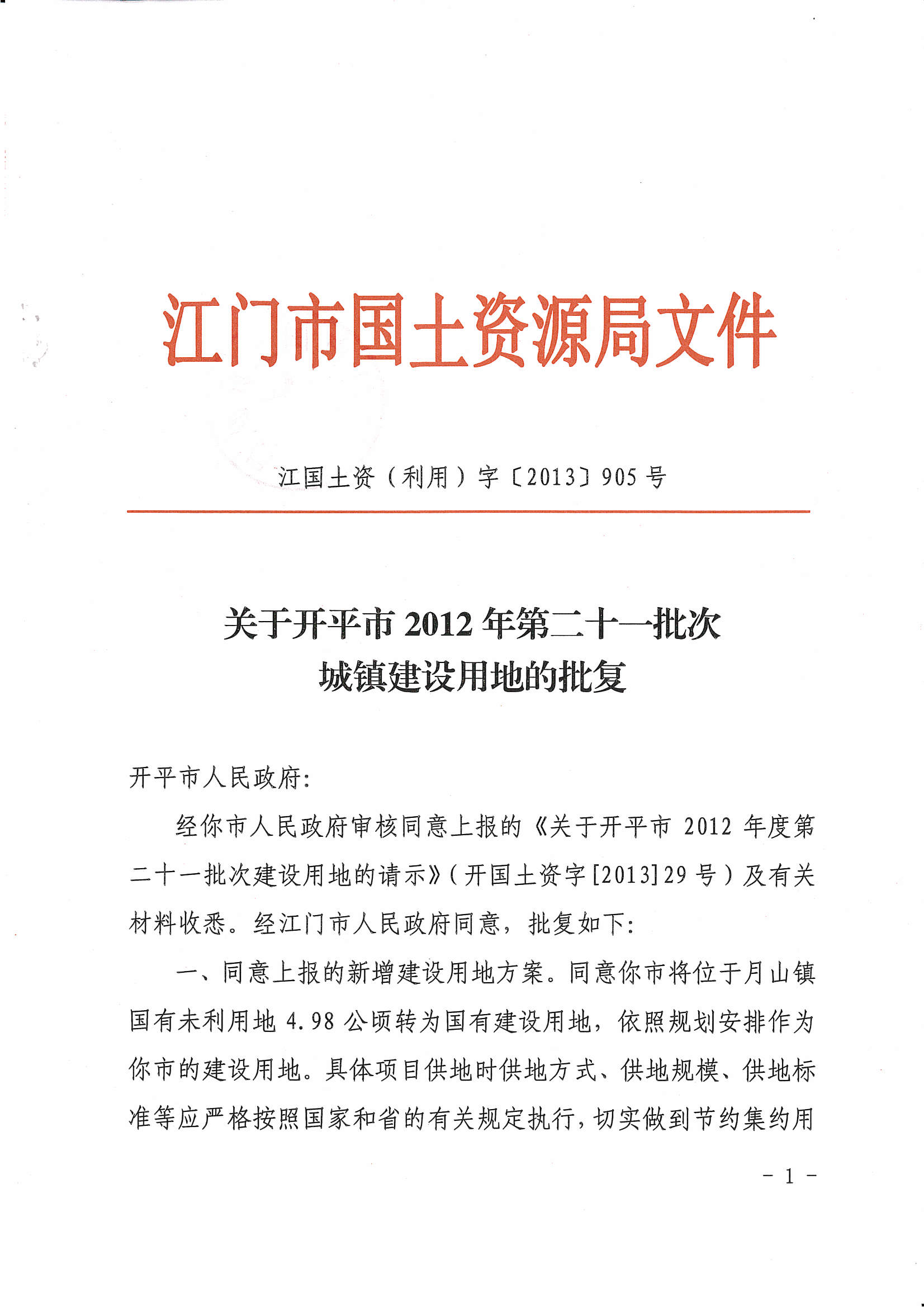 開平市2012年度第二十一批次城鎮(zhèn)建設(shè)用地的批復(fù)