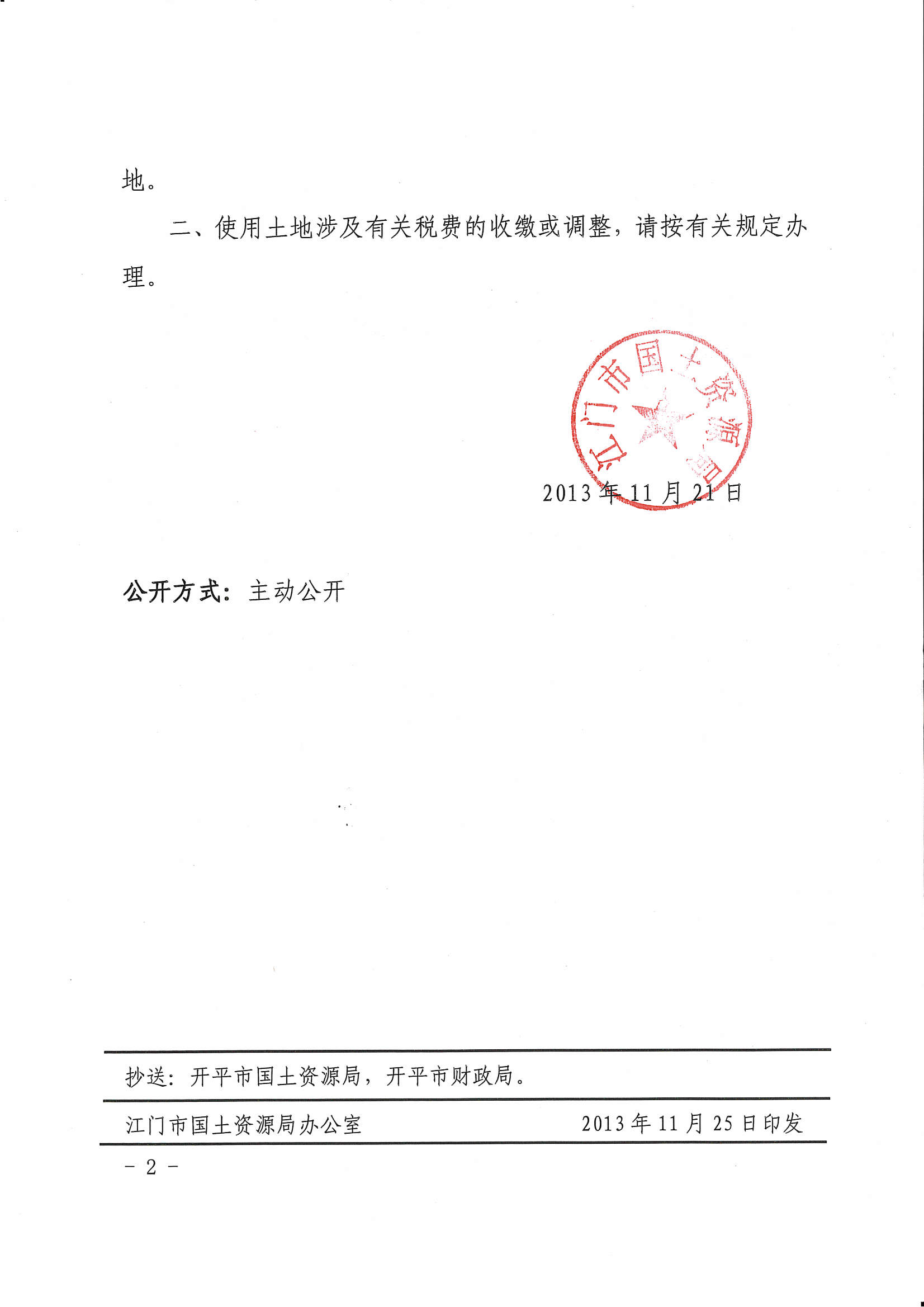 開平市2012年度第二十二批次城鎮(zhèn)建設(shè)用地的批復(fù)