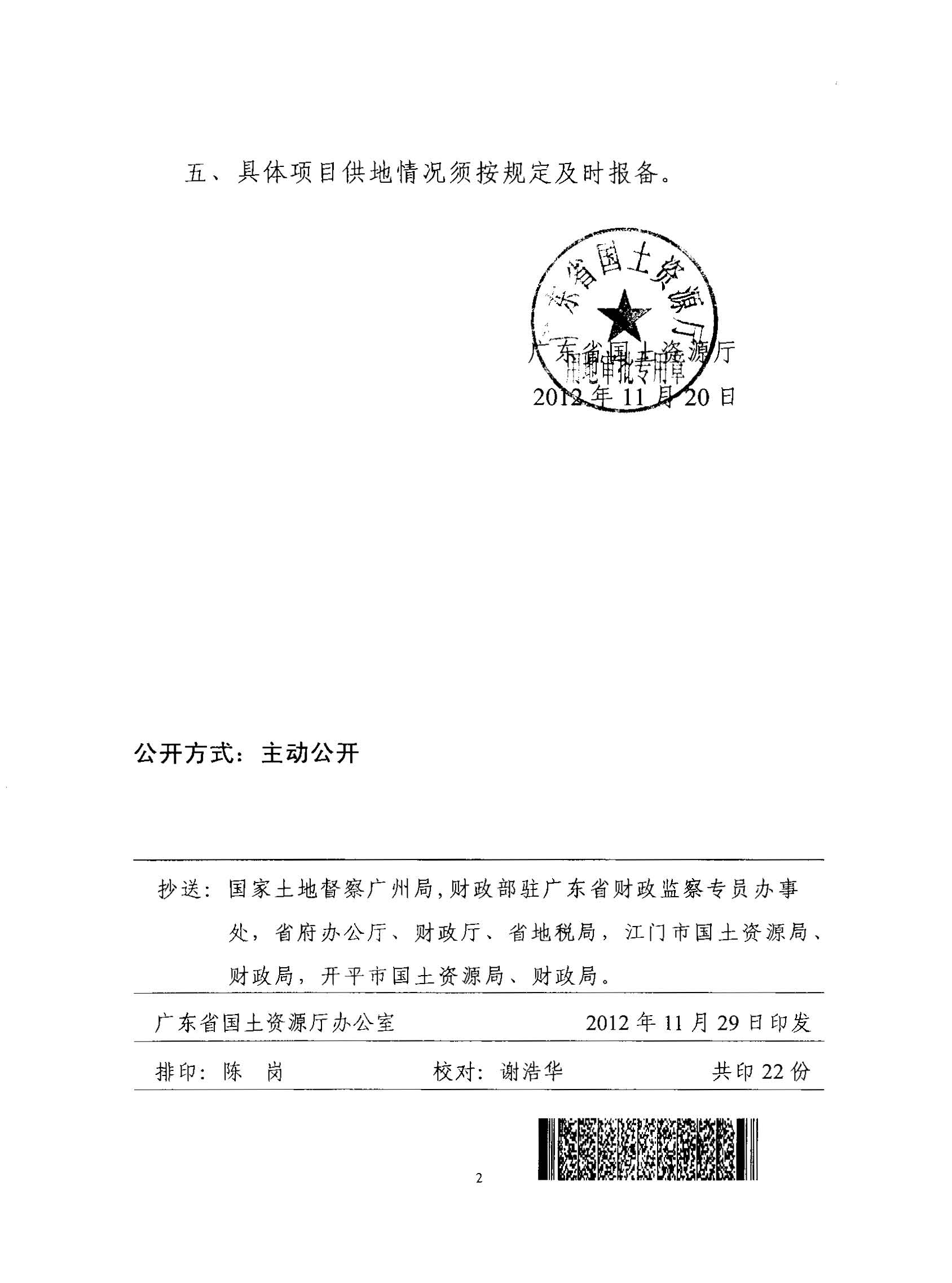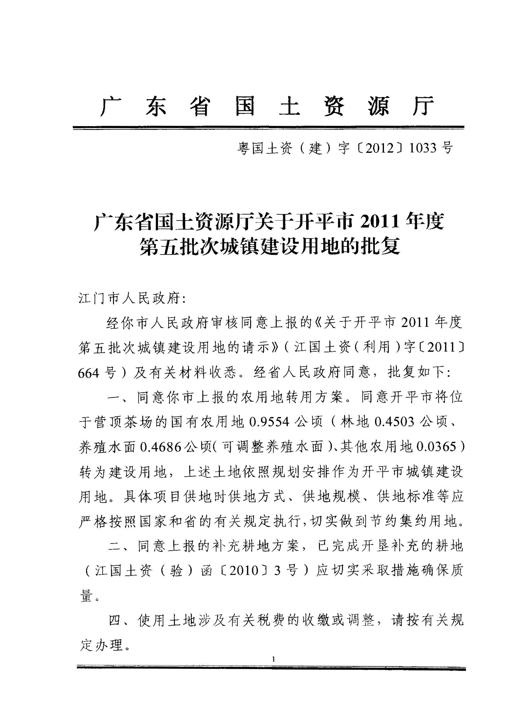 開平市2011年度第五批次城鎮(zhèn)建設(shè)用地的批復(fù)