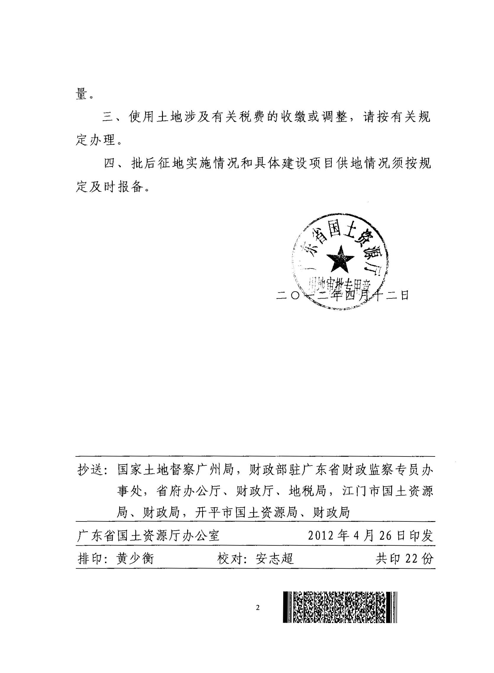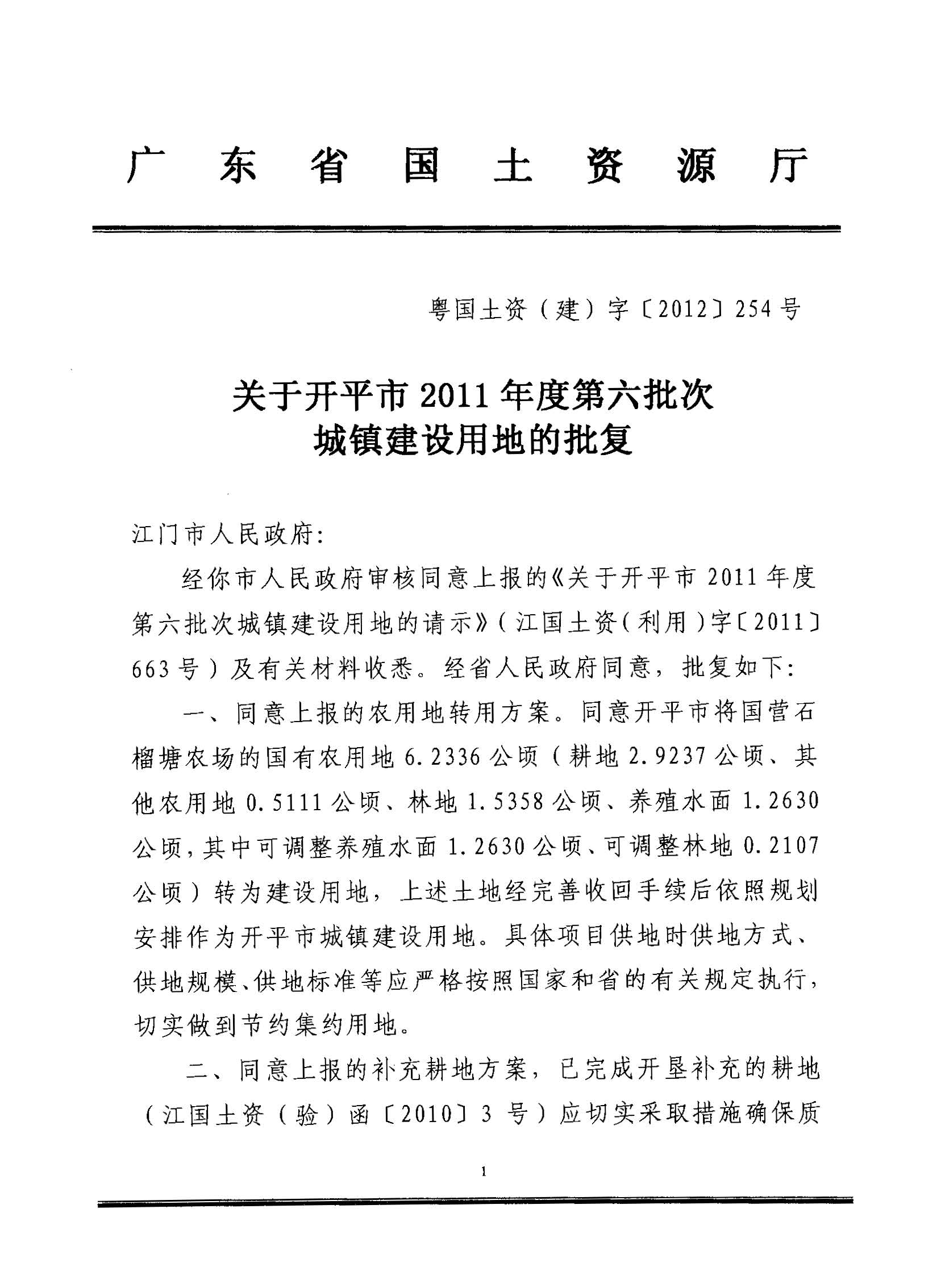開平市2011年度第六批次城鎮(zhèn)建設用地的批復