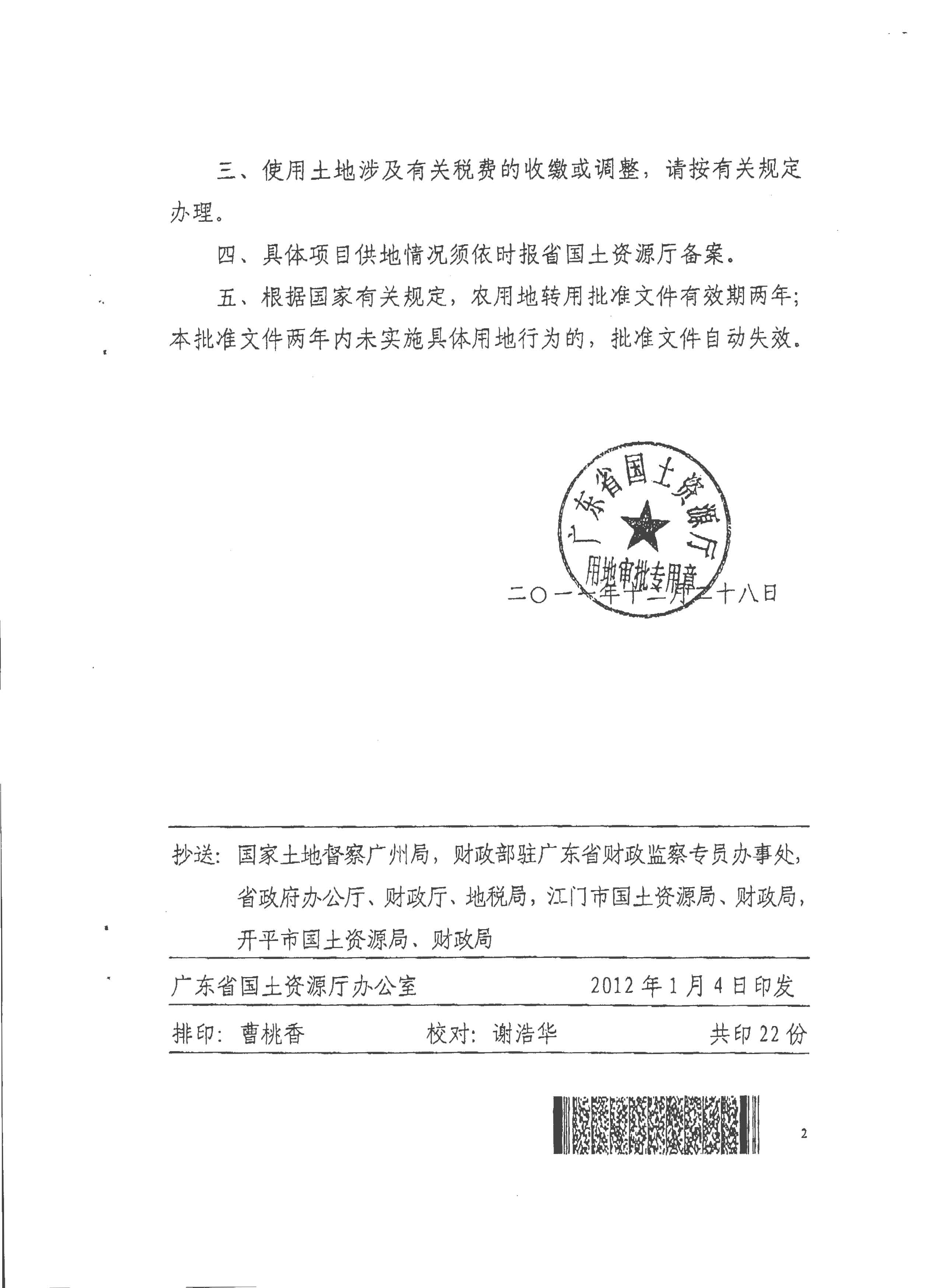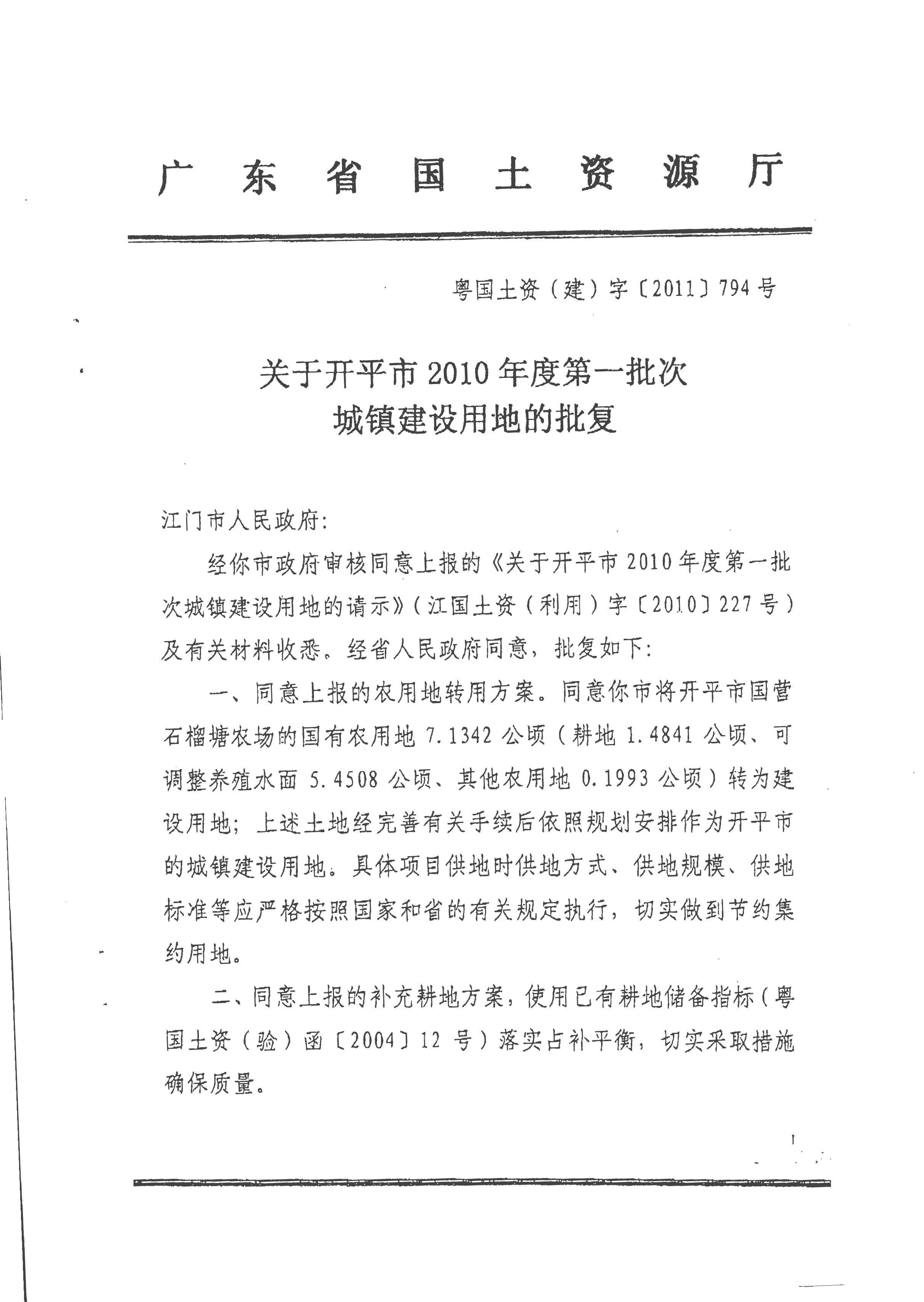 開平市2010年度第一批次城鎮(zhèn)建設用地的批復