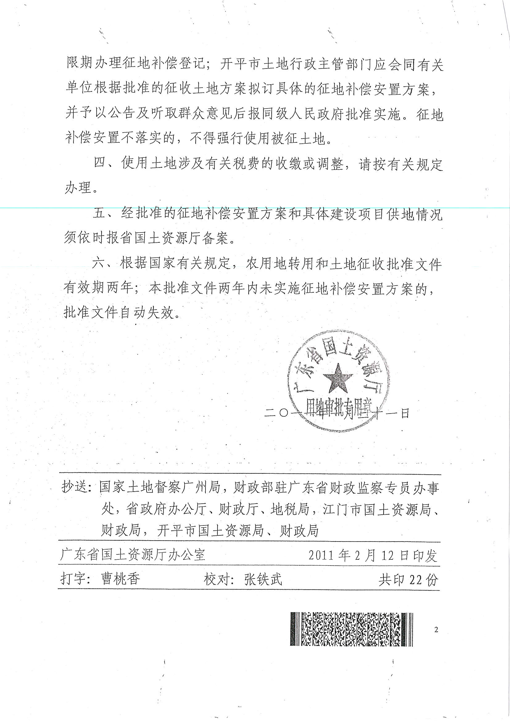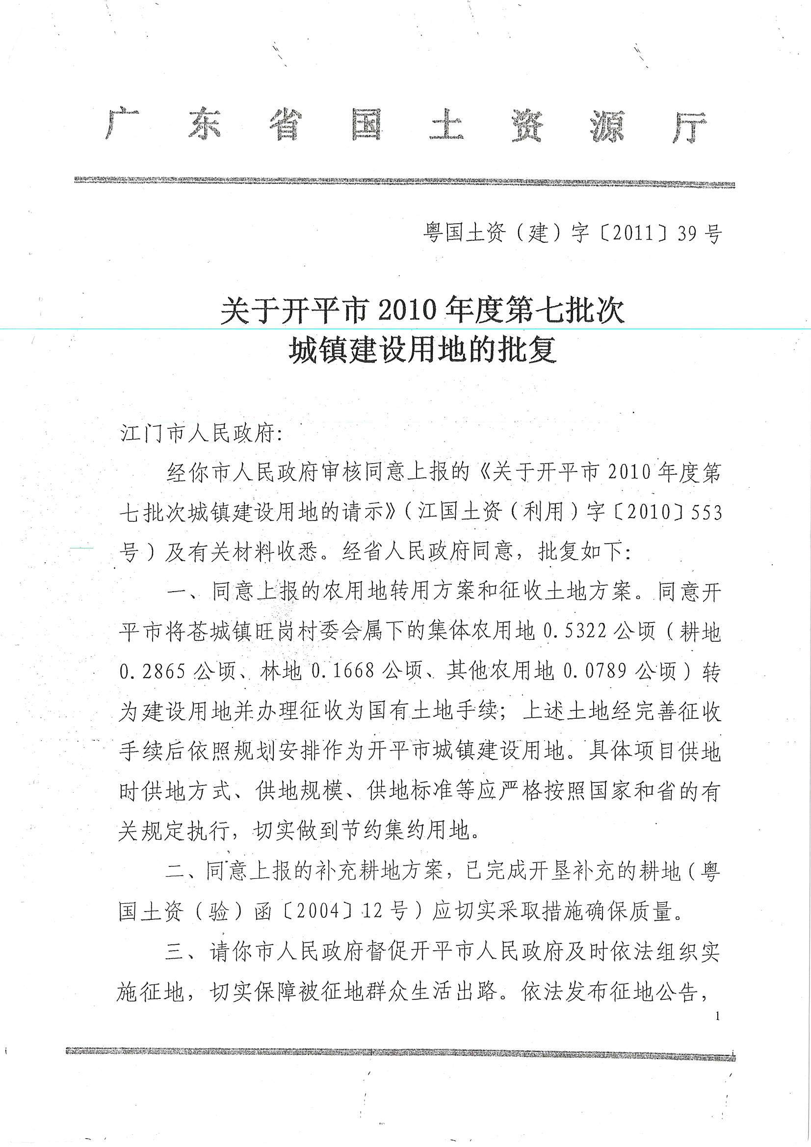 開平市2010年度第七批次城鎮(zhèn)建設(shè)用地的批復(fù)