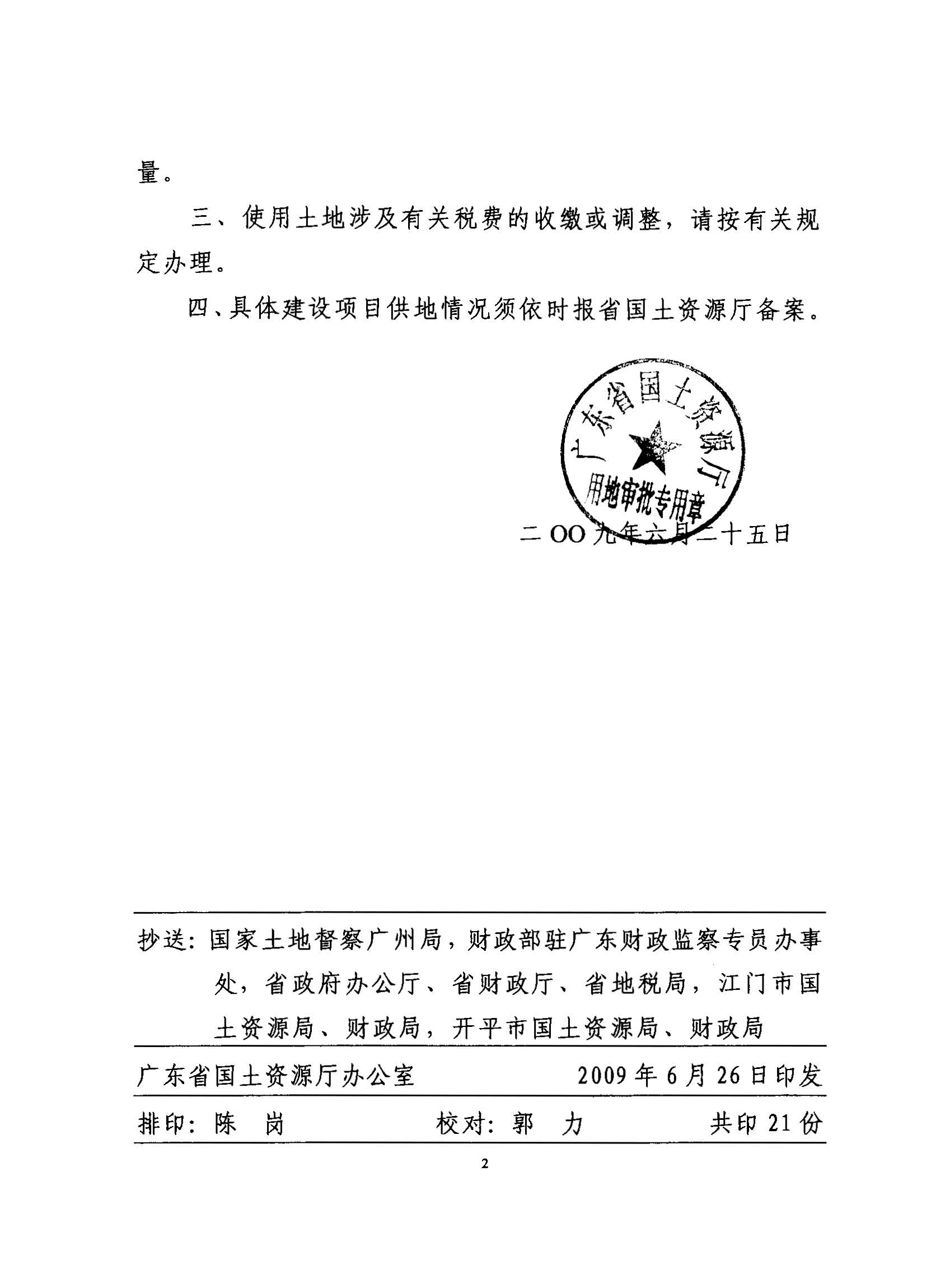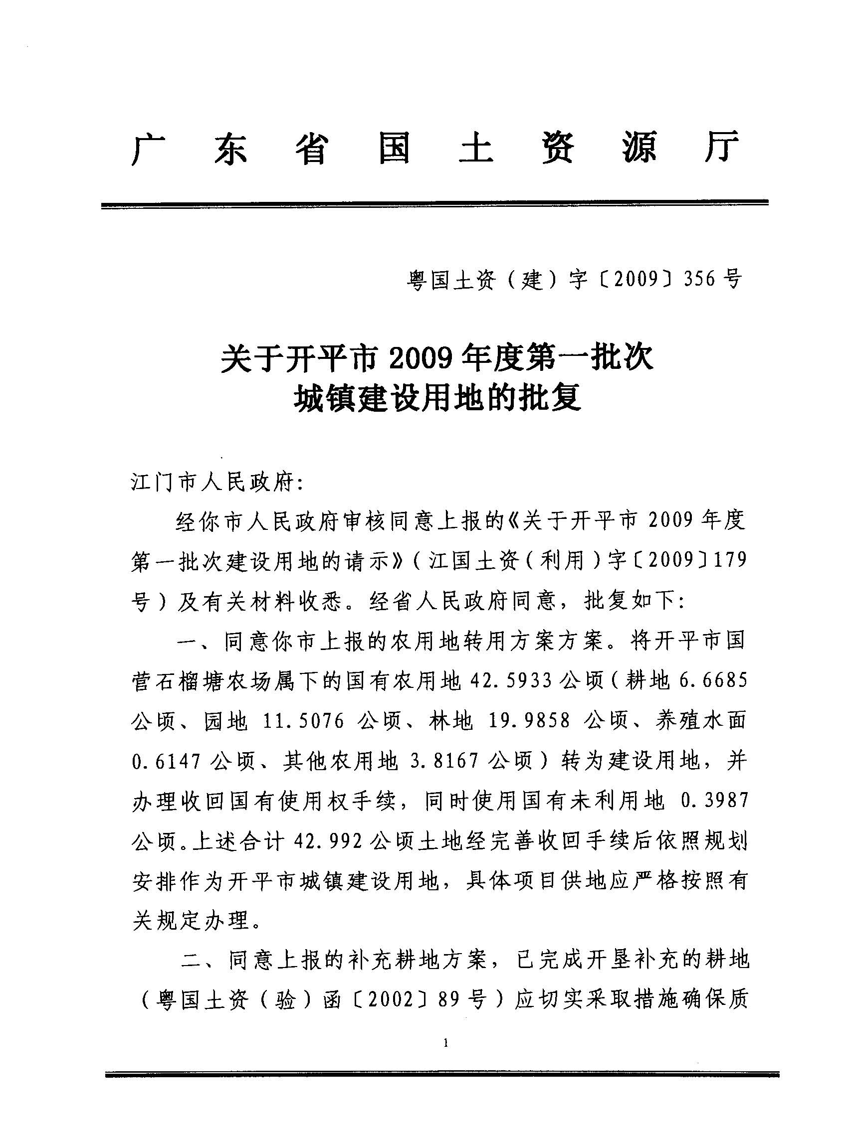開平市2009年度第一批次城鎮(zhèn)建設(shè)用地的批復(fù)