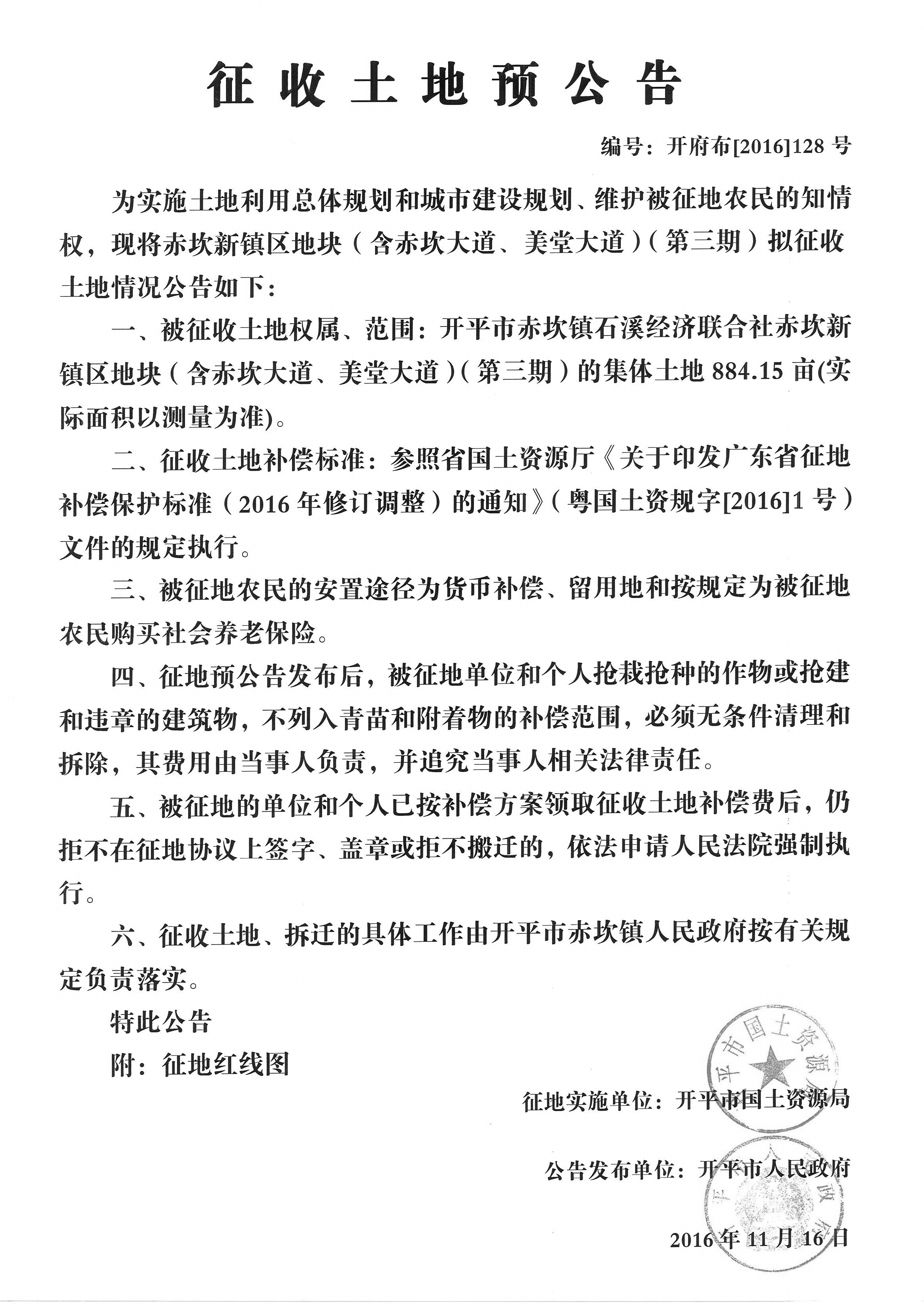 征收土地預(yù)公告(赤坎新鎮(zhèn)區(qū)地塊(含赤坎大道、美堂大道)(第三期))