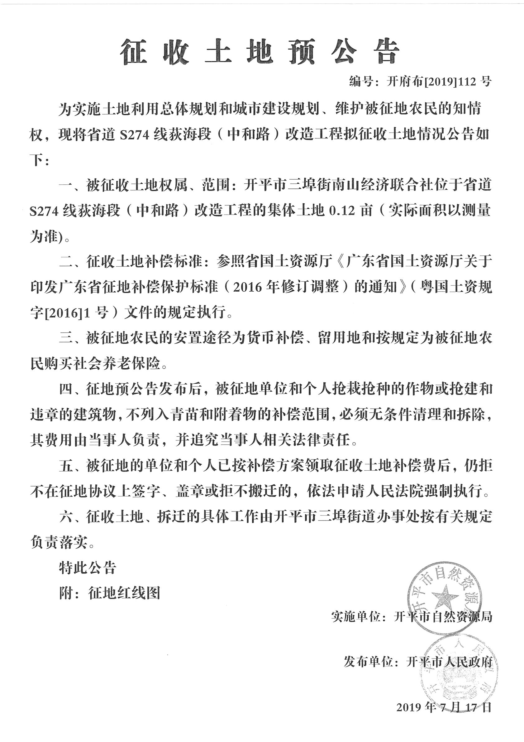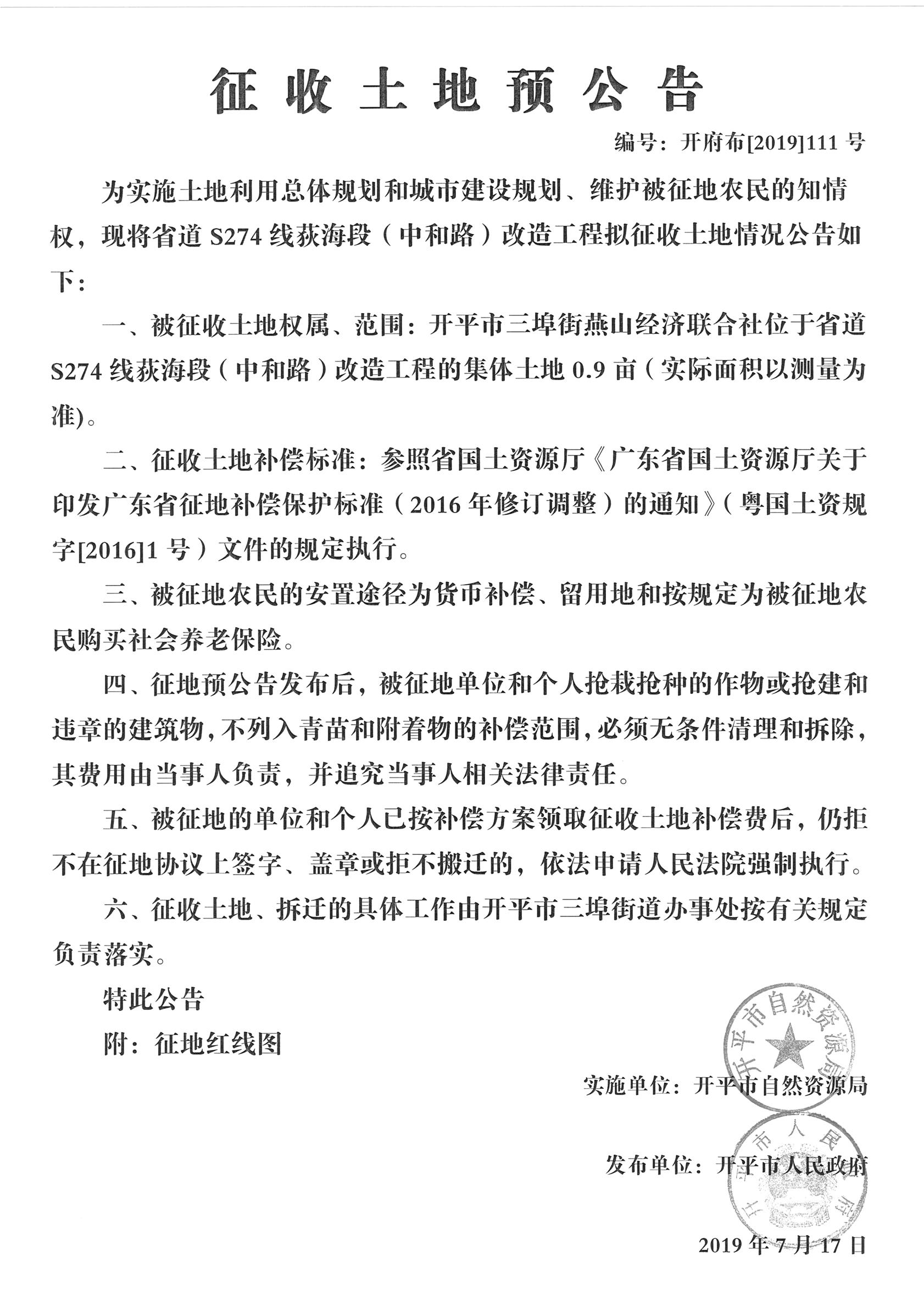 省道S274線荻海段(中和路)改造工程征收土地預(yù)公告