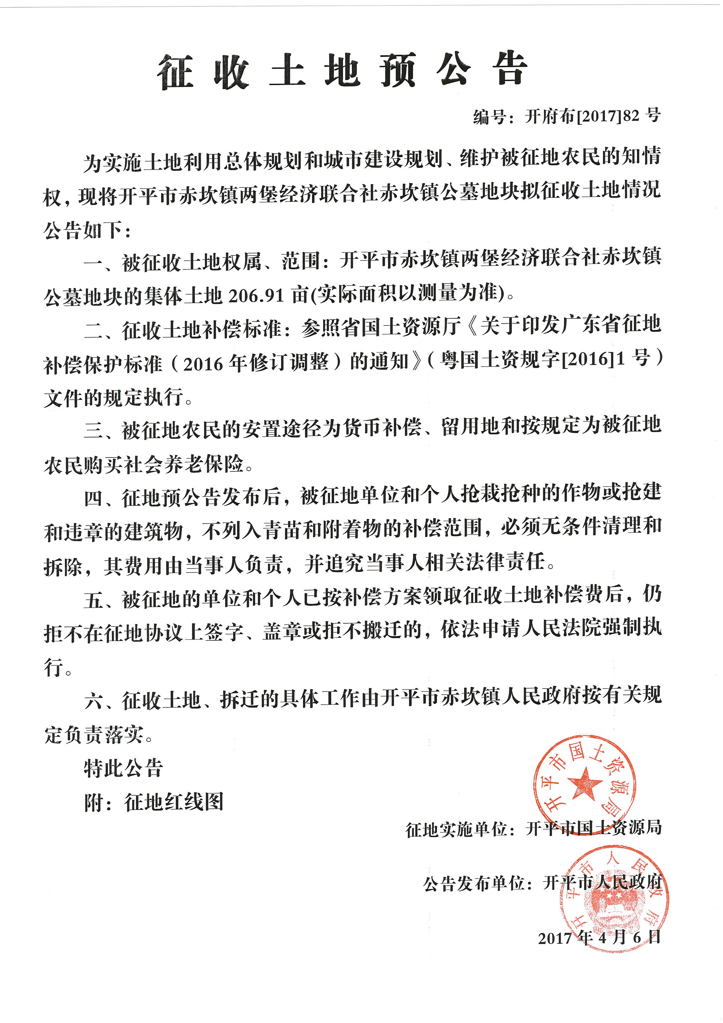 赤坎鎮(zhèn)公墓地塊赤坎鎮(zhèn)兩堡經(jīng)濟(jì)聯(lián)合社征地預(yù)公告