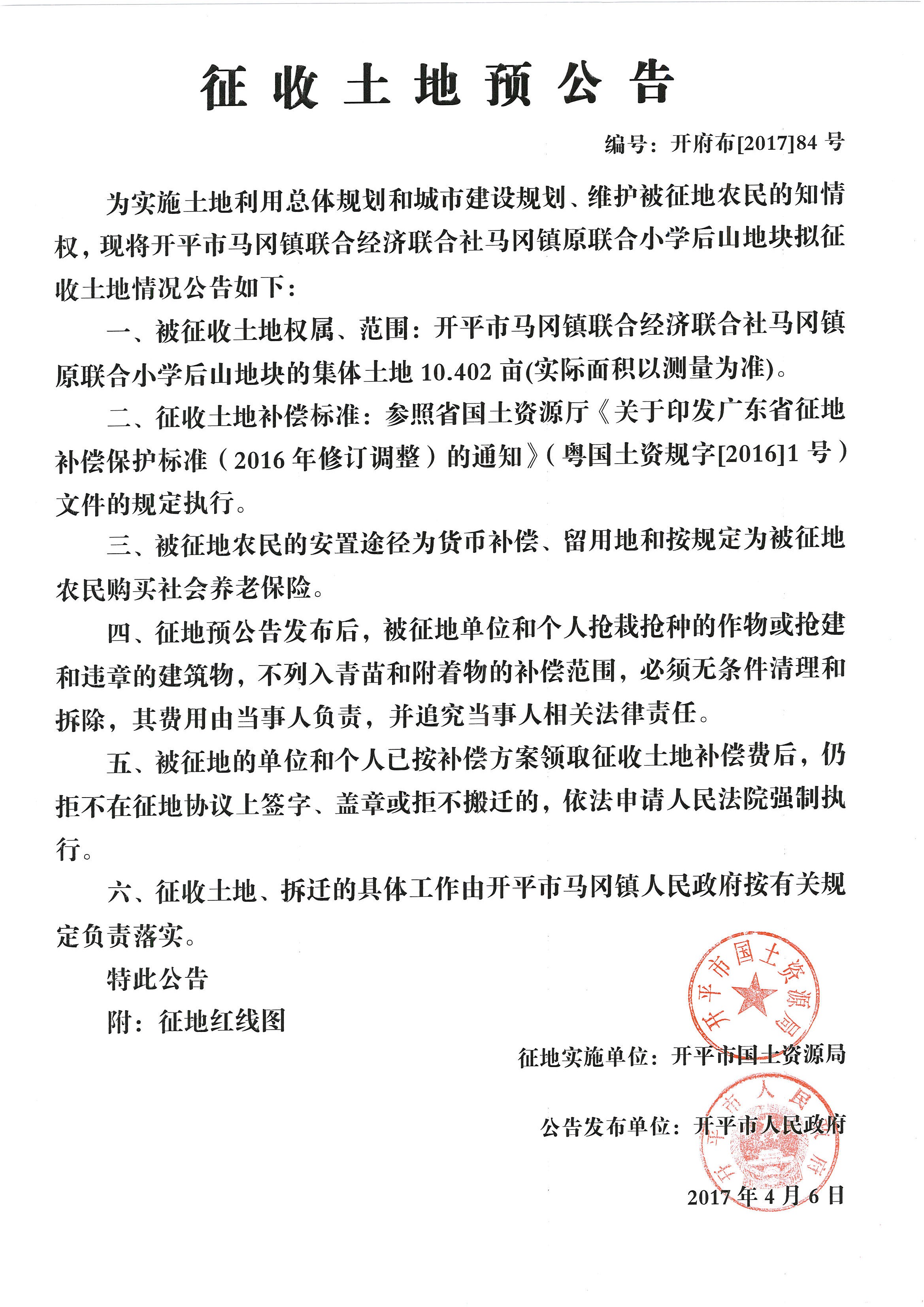 馬岡鎮(zhèn)原聯(lián)合小學(xué)后山地塊馬岡鎮(zhèn)聯(lián)合經(jīng)濟(jì)聯(lián)合社征地預(yù)公告