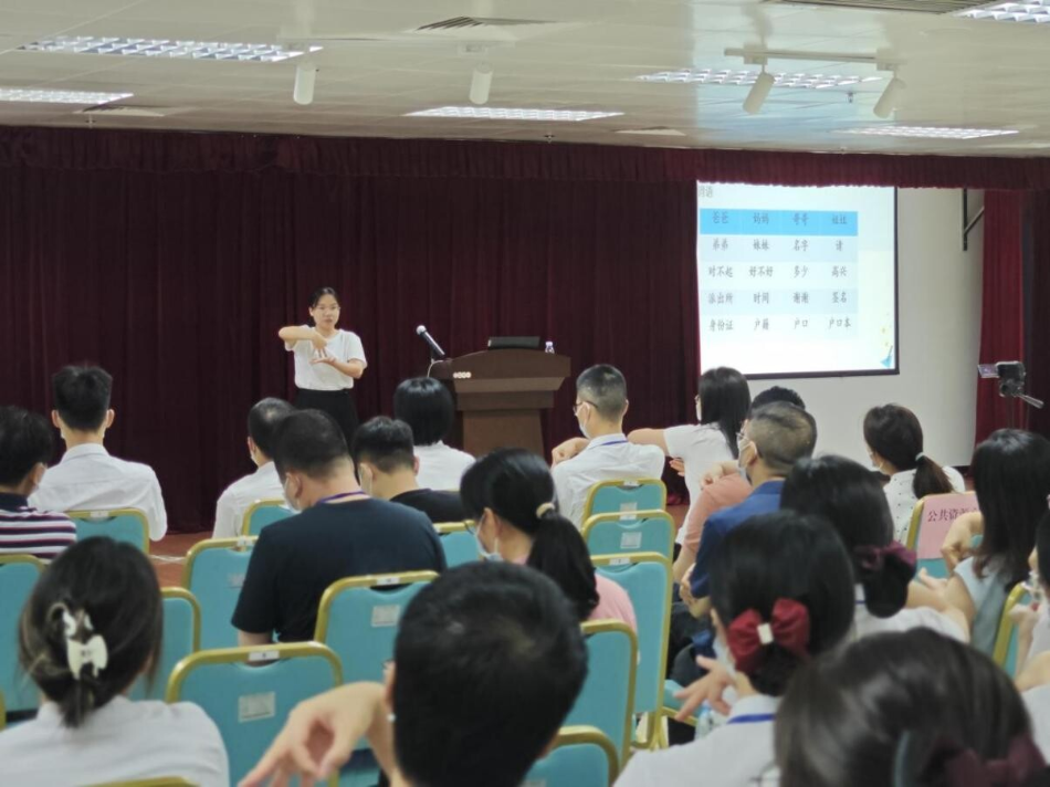 防范始于行”為主題的急救知識(shí)培訓(xùn)。課上進(jìn)行了止血、包扎、溺水、家庭急救等理論知識(shí)講解以及進(jìn)行了現(xiàn)場(chǎng)實(shí)操演示。 隨后,開(kāi)平市特殊教育學(xué)校余揚(yáng)君老師通過(guò)現(xiàn)場(chǎng)教學(xué)、實(shí)操練習(xí)、現(xiàn)場(chǎng)抽查等方式,重點(diǎn)圍繞政務(wù)服務(wù)類等方面用語(yǔ)開(kāi)展手語(yǔ)教學(xué),由淺入深,幫助學(xué)員掌握日常政務(wù)服務(wù)手語(yǔ)交流技巧。 通過(guò)此次培訓(xùn),學(xué)員不僅提升了應(yīng)對(duì)突發(fā)意外傷害的緊急救援能力,更掌握了與聽(tīng)障人士交流的基本手語(yǔ),提升自身手語(yǔ)溝通能力。接下來(lái),市行政服務(wù)中心將以創(chuàng)建“廣東省政務(wù)服務(wù)標(biāo)桿大廳”為目標(biāo),打造適老化、適殘化便民服務(wù)大廳,全力配合我市文明城市創(chuàng)建工作,讓政務(wù)服務(wù)更有溫度和深度。