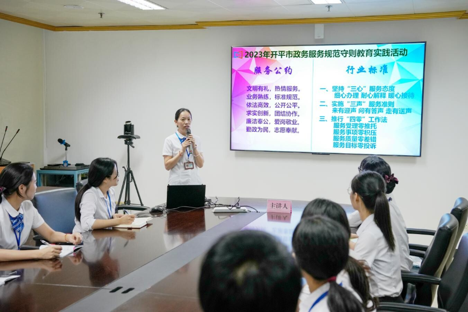 “文明有禮,熱情服務(wù);業(yè)務(wù)熟練,標準規(guī)范;依法高效,公開公平……”一陣陣嘹亮的聲音從活動現(xiàn)場傳來,這是政務(wù)人熟知的服務(wù)公約和行業(yè)標準。8月23日下午,為進一步提高窗口工作人員服務(wù)意識,打造一流服務(wù)的標桿大廳,市政務(wù)服務(wù)數(shù)據(jù)管理局組織開展政務(wù)服務(wù)行業(yè)規(guī)范培訓(xùn)活動。 本次培訓(xùn)以采取“理論培訓(xùn)+現(xiàn)場模擬解說”的方式進行。為了更貼近實際,充分發(fā)揮老員工的“傳幫帶”作用,活動特邀請了從事窗口服務(wù)工作達13年之久的導(dǎo)辦窗口組長梁柳開為主講人。梁組長以儀容儀表規(guī)范、文明用語規(guī)范、工作行為規(guī)范、工作場所規(guī)范、工作規(guī)范等“五個規(guī)范”為主要內(nèi)容,結(jié)合實際案例對窗口人員服務(wù)行為、形象禮儀、文明用語、紀律要求、禁忌事項等進行了生動形象的講解,工作人員認真聆聽、仔細記錄、互動交流,現(xiàn)場氣氛十分熱烈。培訓(xùn)結(jié)束后,工作人員紛紛表示此次培訓(xùn)有理論、有實訓(xùn),今后將學(xué)以致用,以飽滿的熱情投身于窗口工作,用自己的實際行動為群眾提供更加用心、貼心、暖心的政務(wù)服務(wù)。 市政務(wù)服務(wù)數(shù)據(jù)管理局將堅持定期舉辦政務(wù)服務(wù)行業(yè)規(guī)范培訓(xùn)活動,以打造一支“業(yè)務(wù)精通、素質(zhì)過硬、服務(wù)高效”的品牌政務(wù)服務(wù)團隊為目標,努力為辦事群眾提供“精準、特色、高效、暖心”的政務(wù)服務(wù),切實打通服務(wù)群眾“最后一米”,走實聯(lián)系群眾“最后一步”,奮力爭創(chuàng)省級標桿政務(wù)服務(wù)大廳。