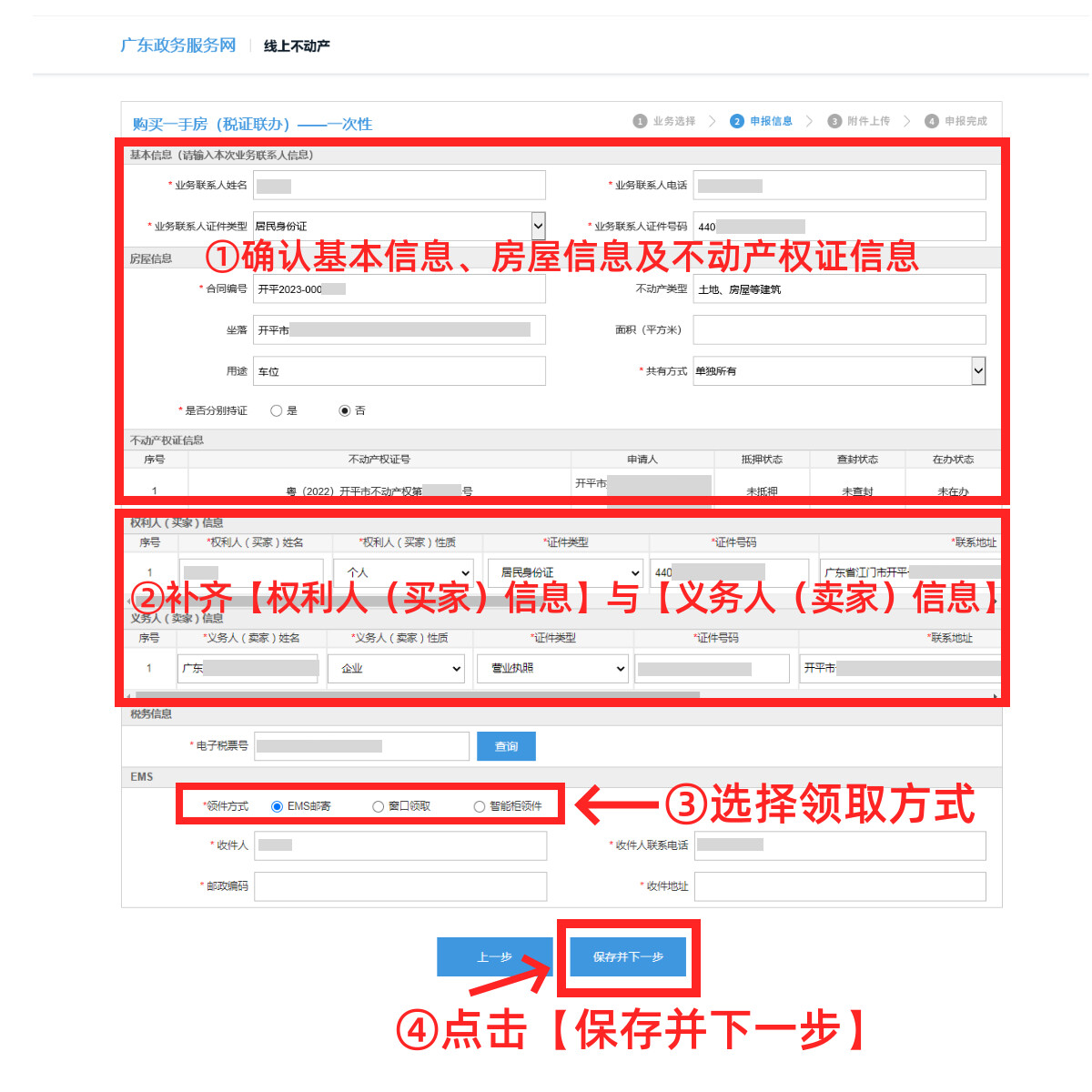當(dāng)你喜氣洋洋地買了套商品房 是不是在接下來要辦理不動產(chǎn)權(quán)證上犯了難? “跑斷腿”問人? 花錢找中介? 統(tǒng)統(tǒng)都不用 好消息! 開平市行政服務(wù)中心正式上線一手房自助辦! 不到十分鐘 一手房辦證即可完成登記! 關(guān)于“一手房”自助辦 是什么? 為深化“放管服”改革,優(yōu)化營商環(huán)境,推動不動產(chǎn)登記便民服務(wù)往實里走、往細(xì)處走,開平市行政服務(wù)中心與市稅務(wù)局、市不動產(chǎn)登記部門密切合作,著力提升“互聯(lián)網(wǎng)+不動產(chǎn)登記”服務(wù)水平,從2023年4月24日起推出“一手房自助辦”新模式,市民只需“跑一窗”,即實現(xiàn)不動產(chǎn)登記“一站式”辦理服務(wù),極大地縮短了辦事時間,提高了辦事效率。 市行政服務(wù)中心一樓自助辦專區(qū) 在哪里? “一手房”自助辦窗口設(shè)置在開平市行政服務(wù)大廳一樓自助辦服務(wù)專區(qū),為給市民提供良好的服務(wù)條件,市行政服務(wù)中心增加設(shè)施投入,優(yōu)化細(xì)節(jié),配置了電腦、智能交互終端機、高拍儀、老花鏡等便民設(shè)施。操作臺上方布置大型操作指引,并配有兩名政務(wù)服務(wù)志愿者,第一時間解決市民不熟悉、不會操作等問題,提供優(yōu)質(zhì)高效的政務(wù)服務(wù)體驗。 政務(wù)服務(wù)志愿者指導(dǎo)市民自助辦理一手房登記 “一手房自助辦”操作指引 便利在哪? 以前辦證,需要到市行政服務(wù)中心,在不動產(chǎn)窗口查證住房套數(shù),再到稅務(wù)窗口繳納契稅,之后才能辦理不動產(chǎn)登記。如今,開平市市民只需來到市行政服務(wù)中心一樓自助辦專區(qū),自己操作申請,不到10分鐘就可以完成“一手房”登記。 截止目前,市行政服務(wù)中心已受理一手房自助辦38宗,受到辦事市民的一致好評。 市行政服務(wù)中心一樓自助辦專區(qū) 怎么辦理? 市民辦理之前需在“江門政務(wù)”公眾號上進(jìn)行預(yù)約,到場必需持大陸身份證和新網(wǎng)簽合同,并提前完成一手房稅費繳納才能進(jìn)行辦理。 新網(wǎng)簽合同 預(yù)約方式: 一、關(guān)注“江門政務(wù)”微信公眾號 二、選擇“政務(wù)服務(wù)” 三、點擊“我要預(yù)約” 四、選擇辦事大廳,選擇“開平市人民政府行政服務(wù)中心” 五、選擇業(yè)務(wù)類型 操作指南: 第一步:進(jìn)入“廣東政務(wù)服務(wù)網(wǎng)”辦理頁面 方式①:通過網(wǎng)址:https://www.gdzwfw.gov.cn/?region=440700進(jìn)入 方式②:搜索“廣東政務(wù)服務(wù)網(wǎng)”進(jìn)入 方式③:打開桌面 第二步:城市切換為【江門市】→選擇【“一件事”主題服務(wù)】(更換圖片) 第三步:先選擇【開平市】,再從“便民服務(wù)”中找到【購買一手房(稅證聯(lián)辦)——一次性”】,點擊進(jìn)入(更換圖片) 第四步:點擊【在線辦理】(更換圖片) 第五步:微信掃碼登錄粵省事賬號 第六步:進(jìn)入【不動產(chǎn)登記】界面,選擇需要辦理業(yè)務(wù)的房產(chǎn)(更換圖片) 第七步:確認(rèn)基本信息、房屋信息及不動產(chǎn)權(quán)證信息并補齊【權(quán)利人(買家)信息】與【義務(wù)人(賣家)信息】,選擇領(lǐng)取方式,確認(rèn)無誤后點擊【保存并下一步】(更換圖片) 第八步:請認(rèn)真查看在領(lǐng)證時所需提交的文件,勾選【我已閱讀并同意】→點擊【確認(rèn)】(更換圖片) 第九步:利用高拍儀掃描“不動產(chǎn)材料”并上傳,上傳完畢后點擊【保存并下一步】。(更換圖片) 第十步:申請成功提交后,會出現(xiàn)以下界面,您將會收到繳費短信,請及時繳費。 ▲自助辦事項將會陸續(xù)更新,敬請期待! 市行政服務(wù)中心導(dǎo)辦咨詢電話:0750-2208211